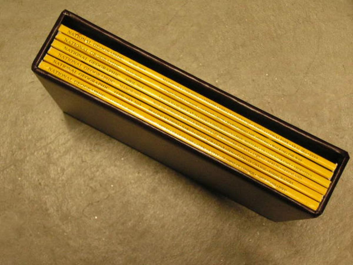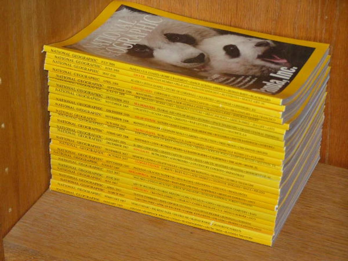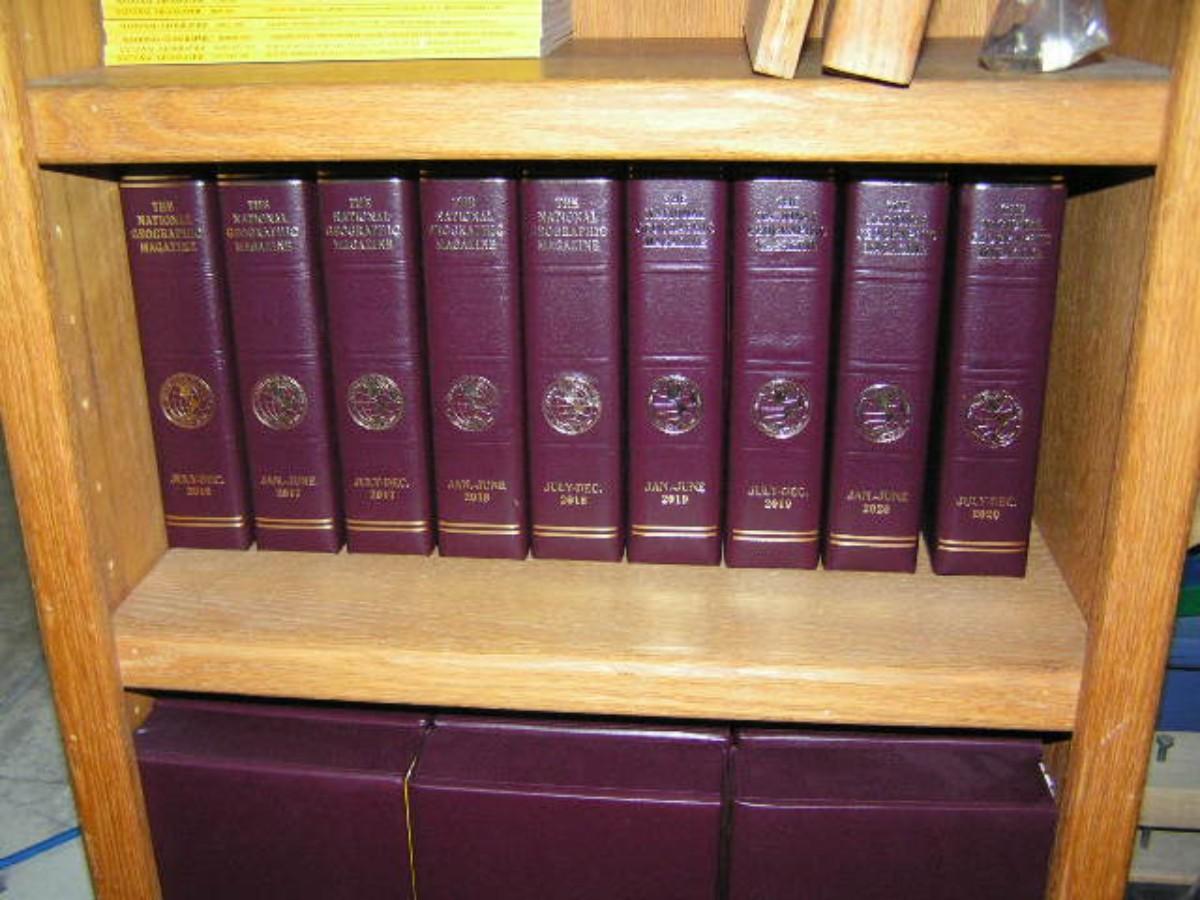 National Geographic magazines. Most in faux leather book shelf jackets.