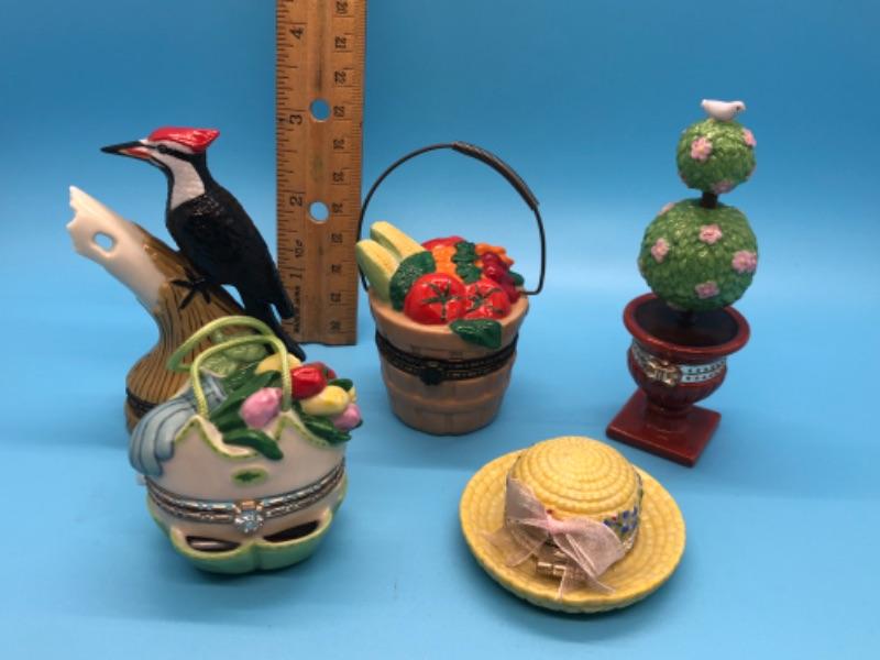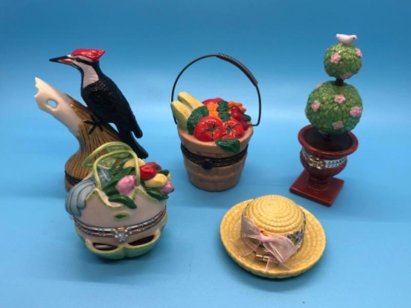 NATIONAL HOME GARDENING CLUB COLLECTION - PORCELAIN BOXES W/TRINKET 5 VARIOUS