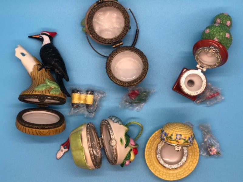 NATIONAL HOME GARDENING CLUB COLLECTION - PORCELAIN BOXES W/TRINKET 5 VARIOUS