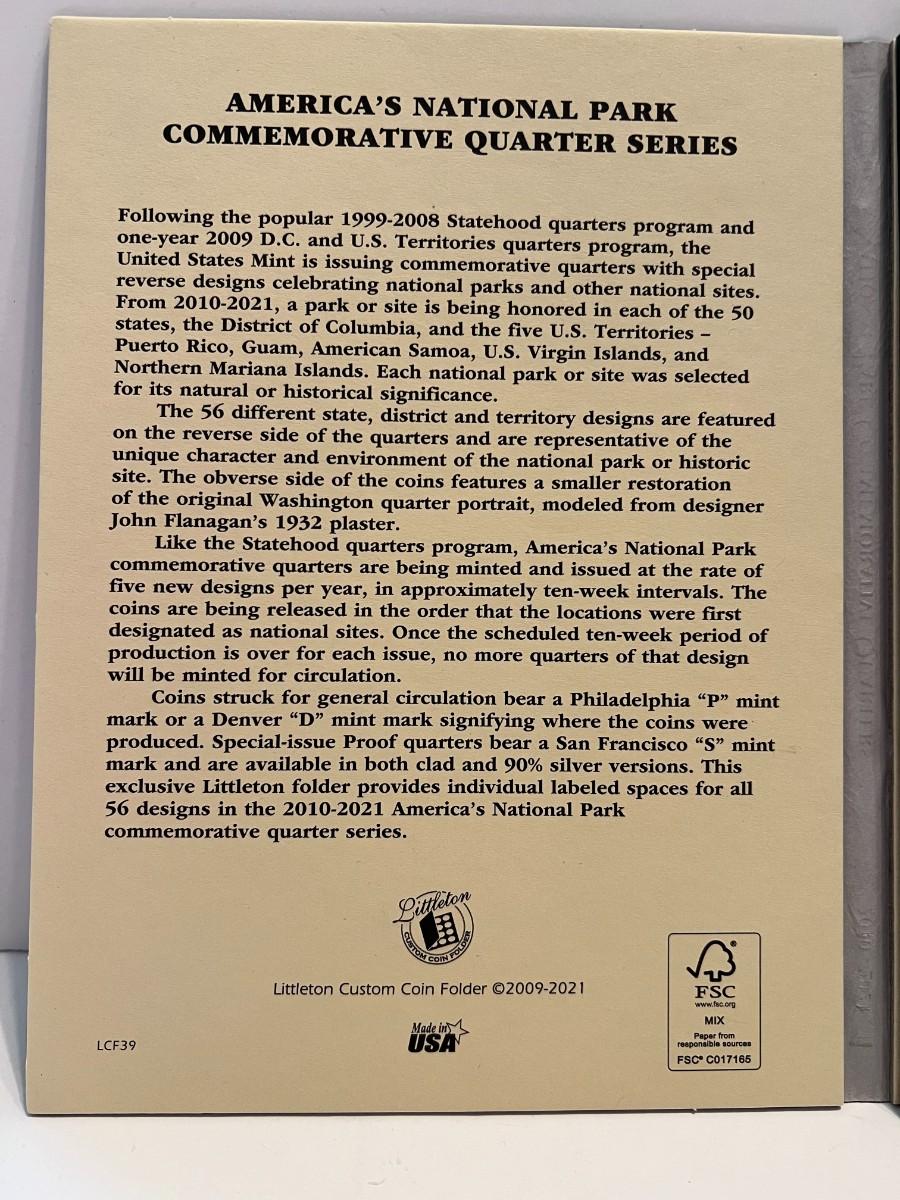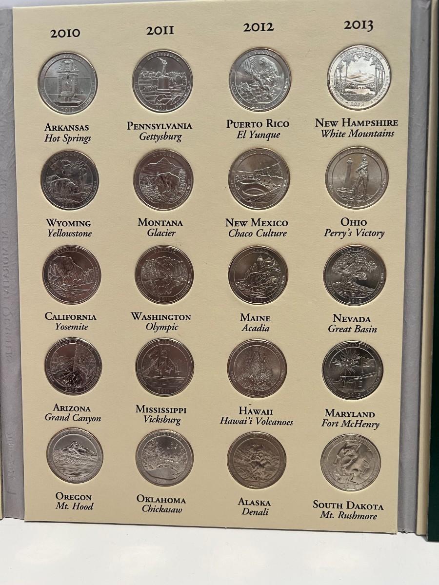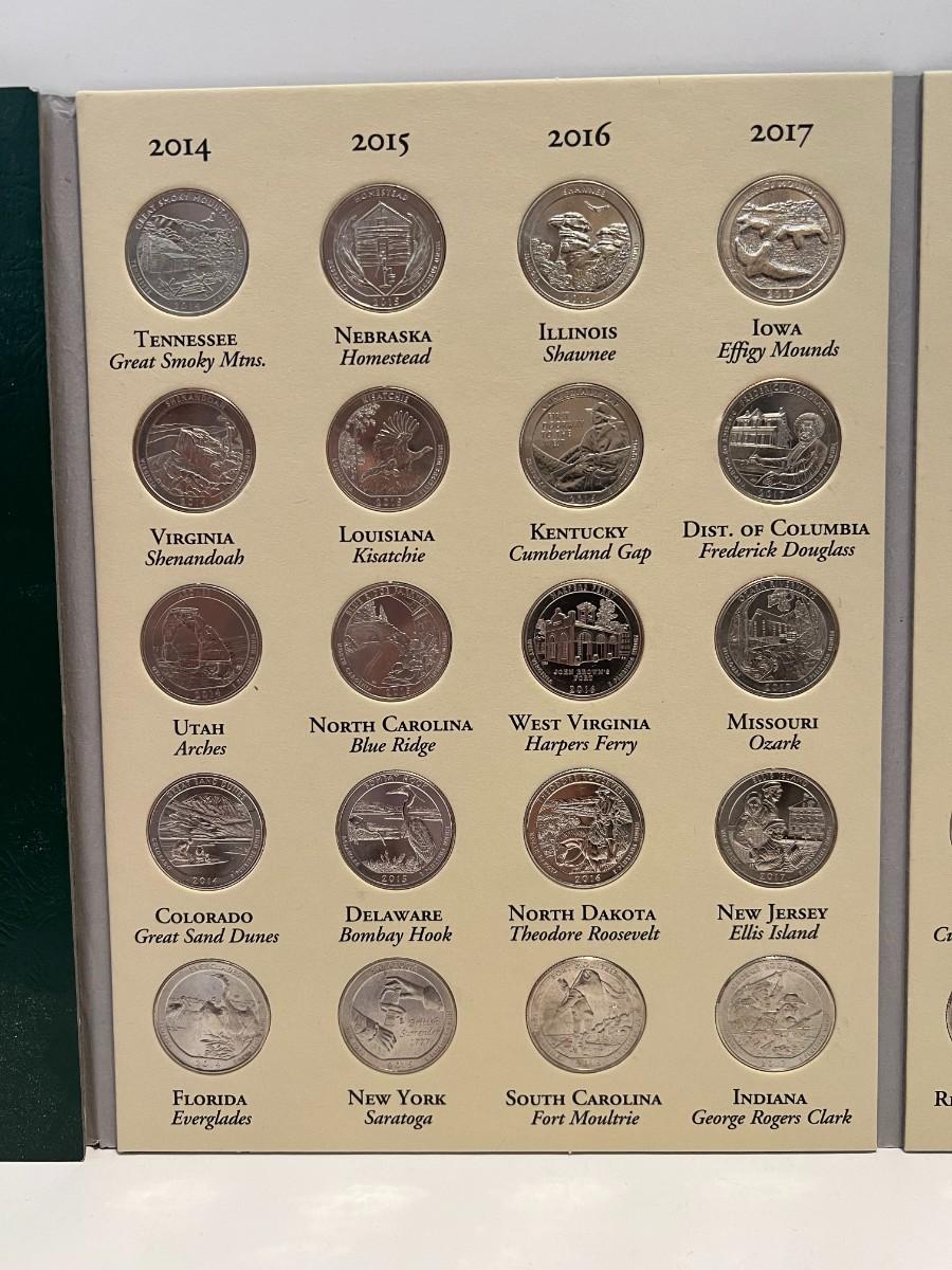 Filled archival quality National Park Commemorative Quarters from 2010-2021
