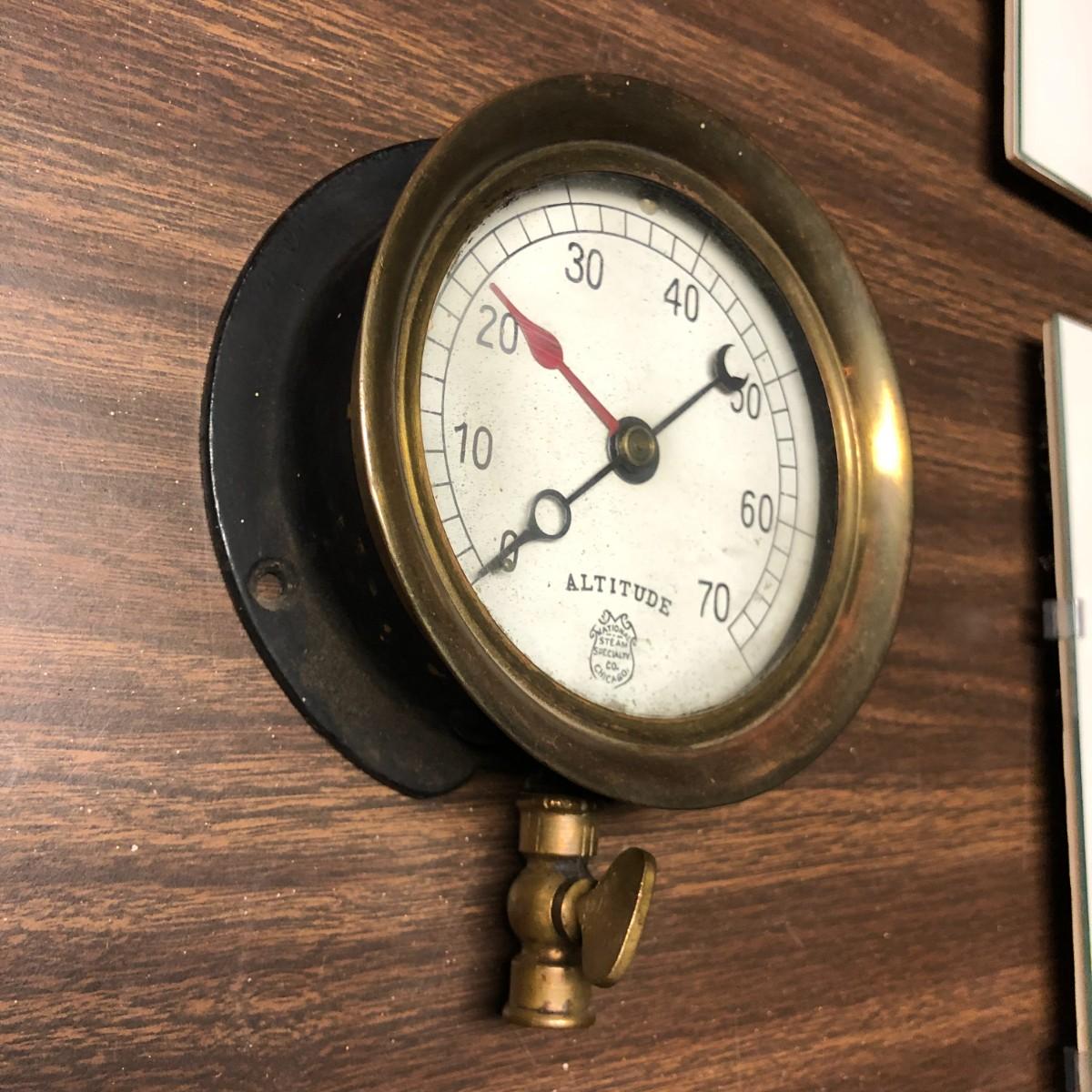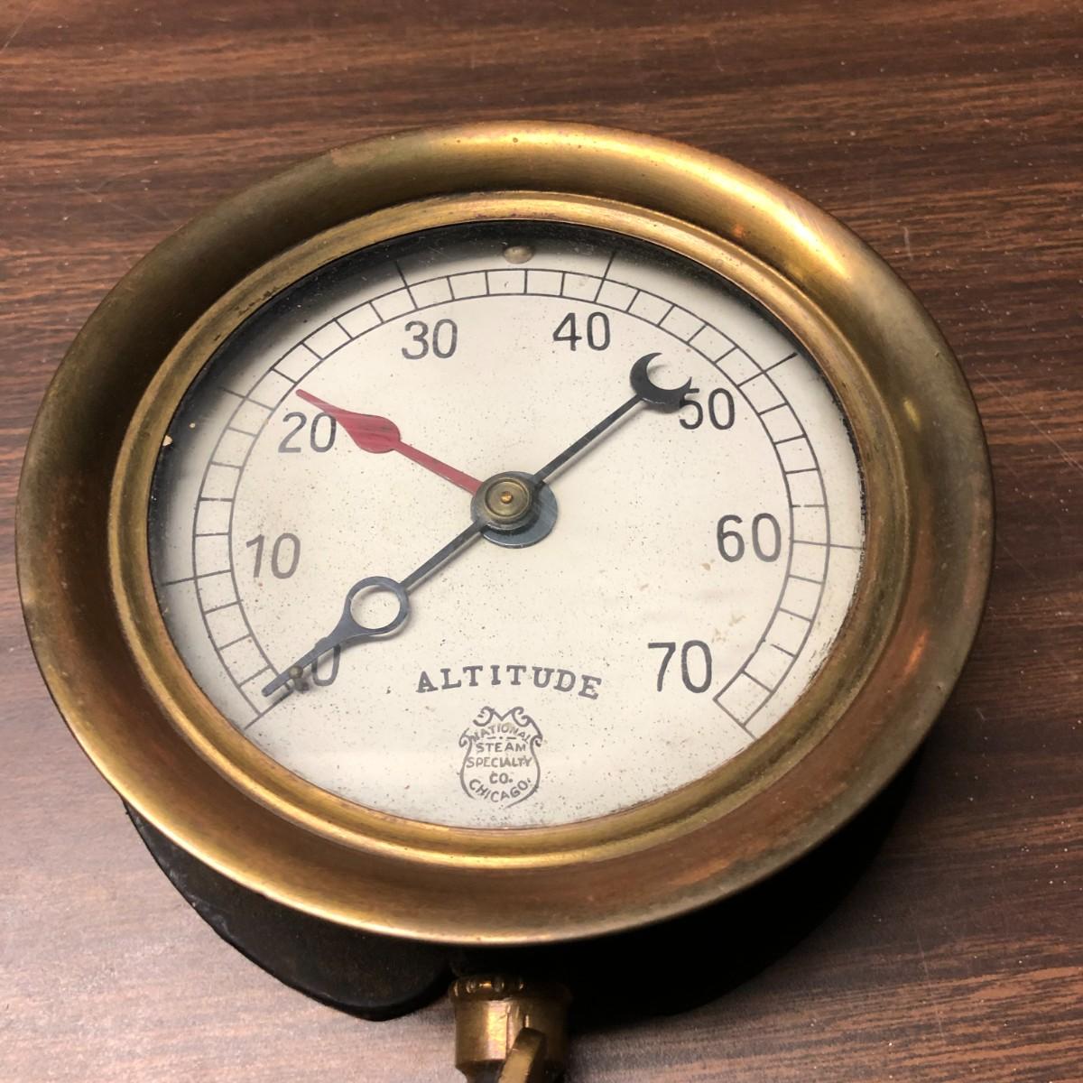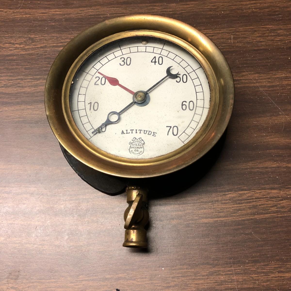 National Steam Specialty Co Chicago Antique Brass Altitude Meter
