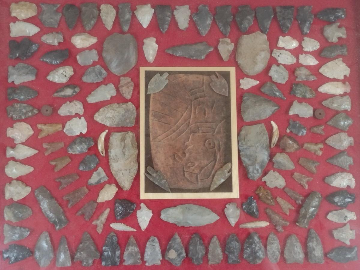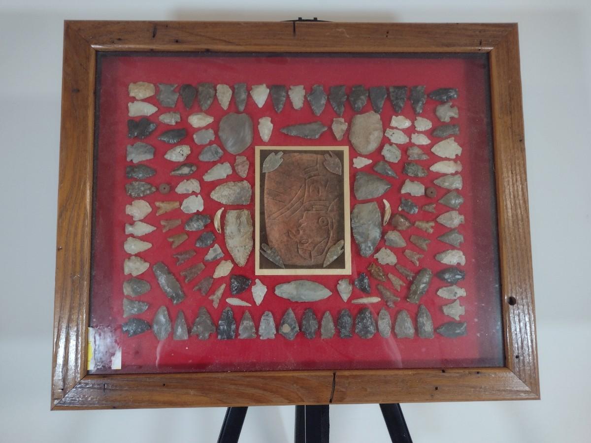 Large Native American Artifact Arrowheads and Points Framed Display #2