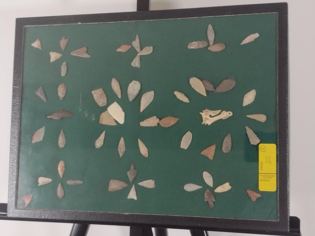 Large Native American Artifact Arrowheads and Points Framed Display #10
