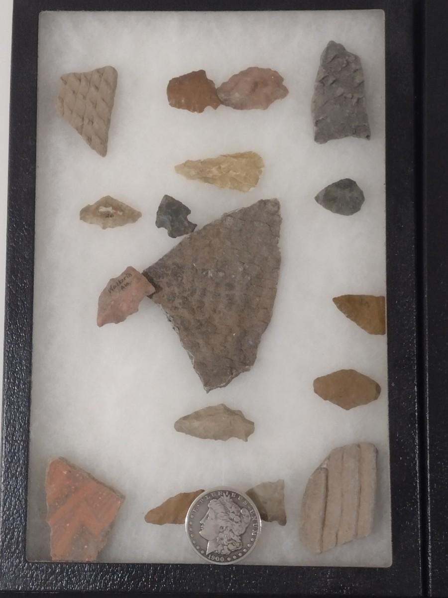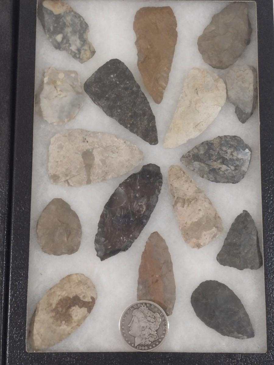 Large Native American Artifact Arrowheads and Points Framed Display #14