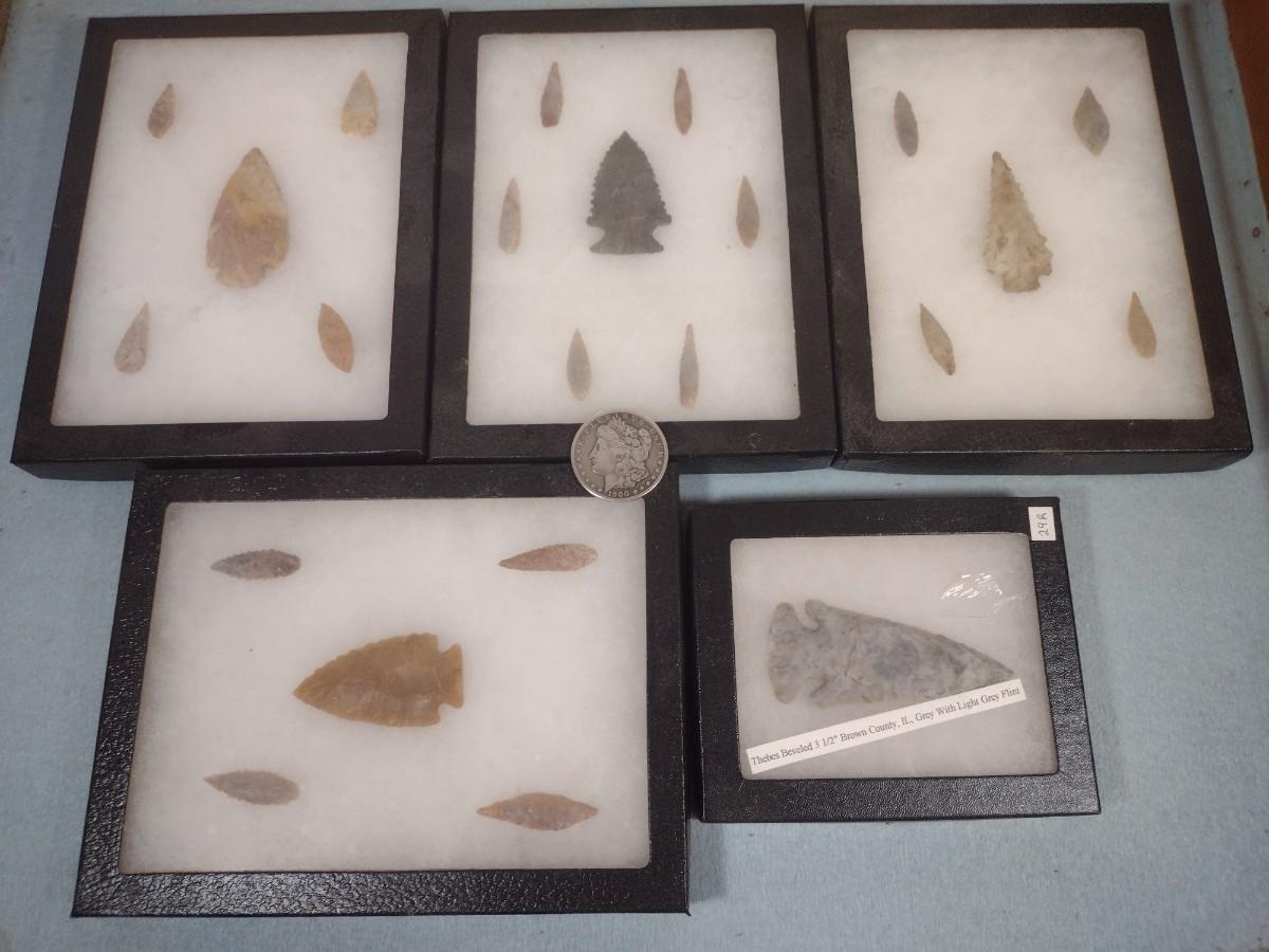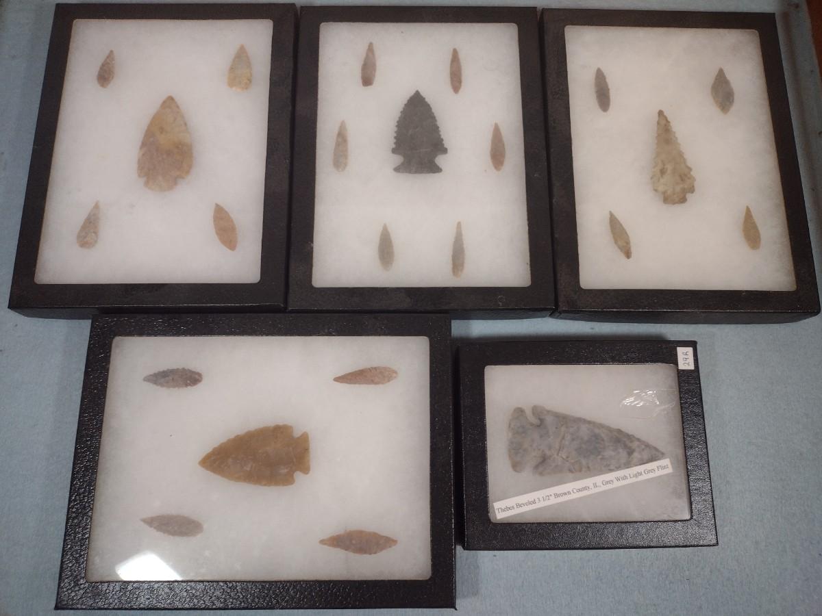 Large Native American Artifact Arrowheads and Points Framed Display #20