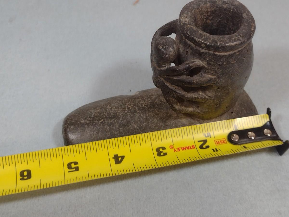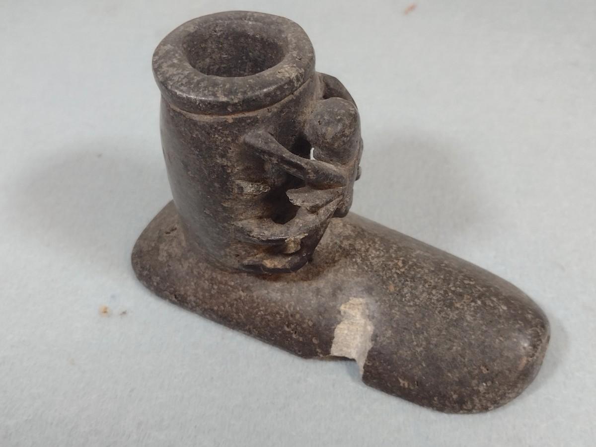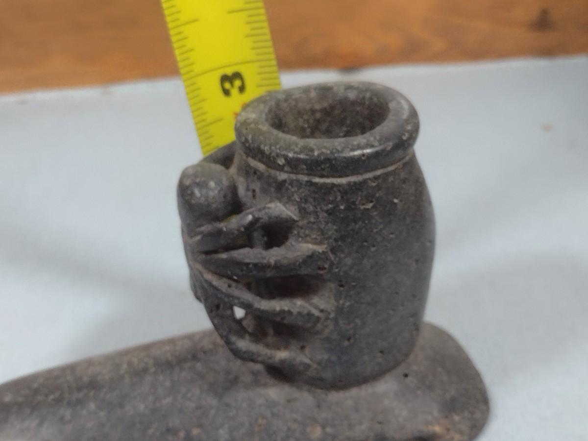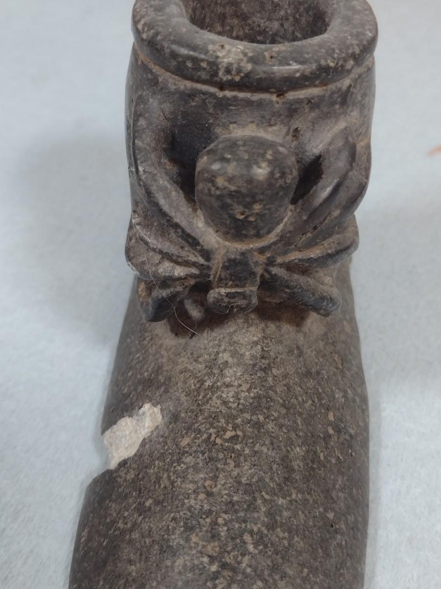 Native American Stone Carved Figural Spider Flat Pipe see pictures for areas of damage