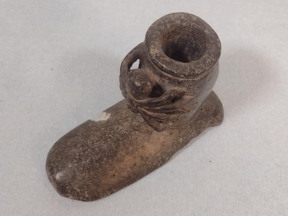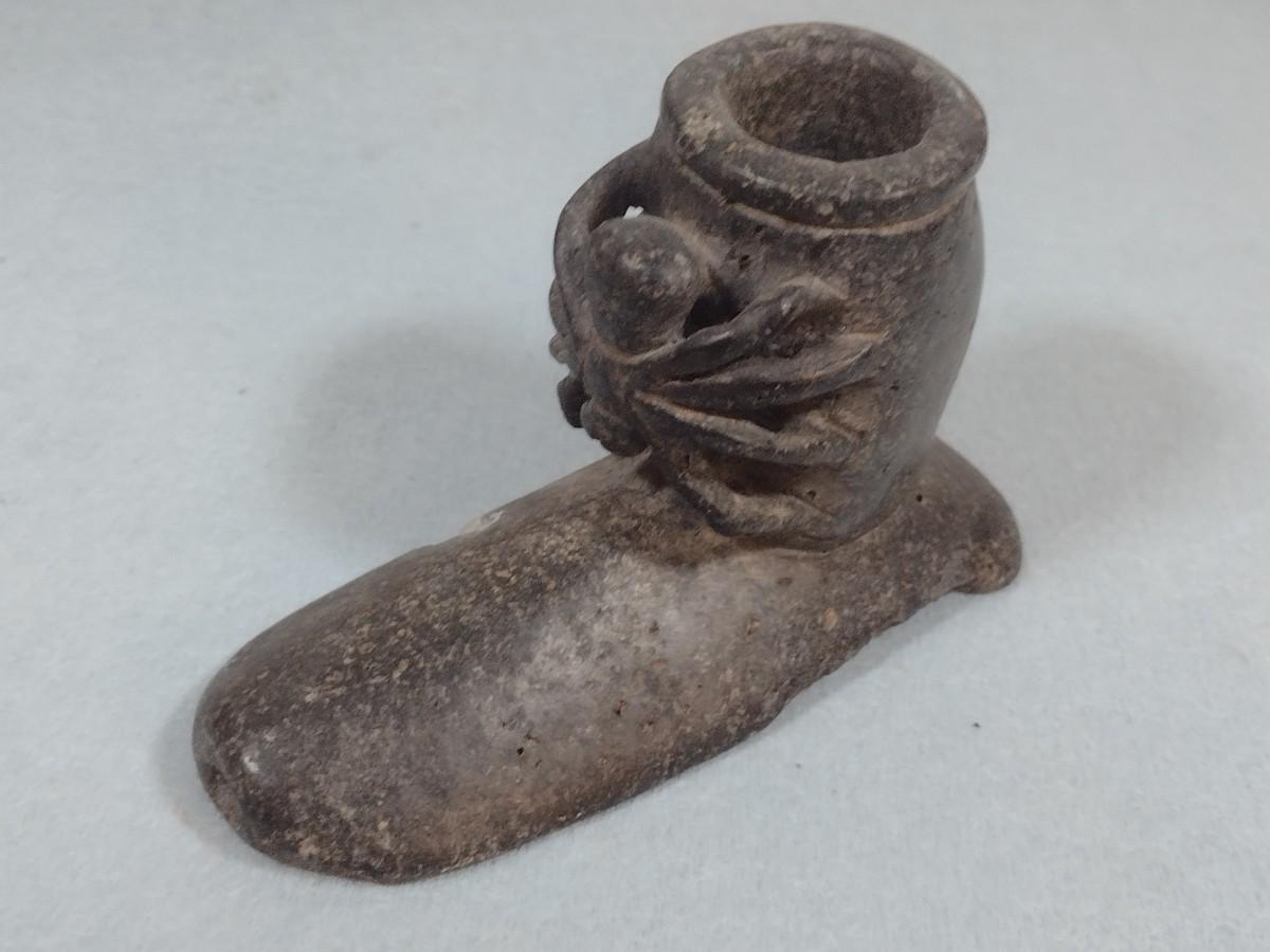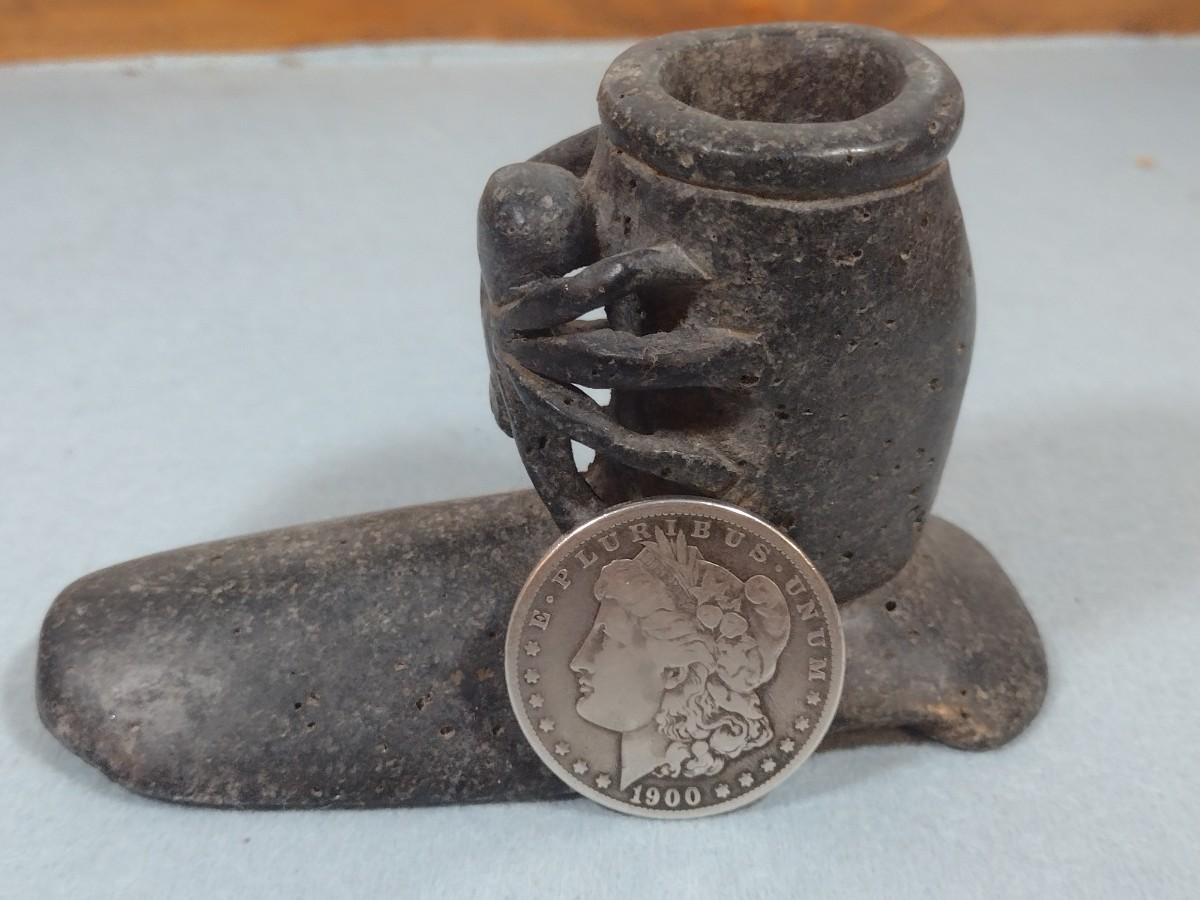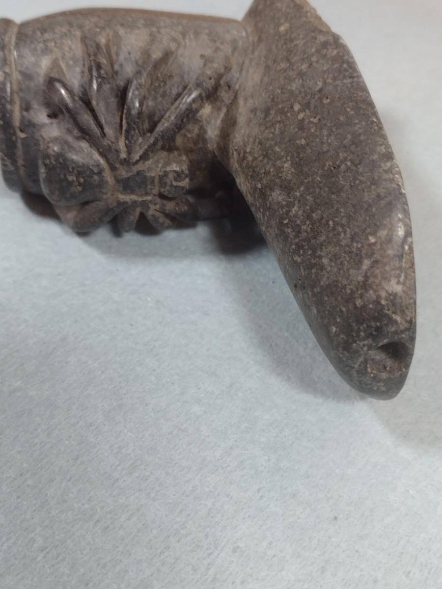 Native American Stone Carved Figural Spider Flat Pipe see pictures for areas of damage
