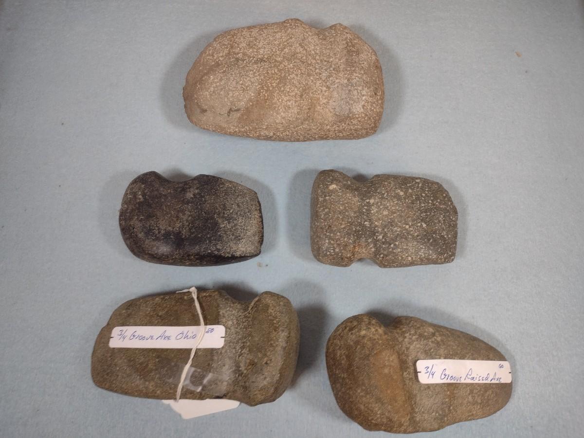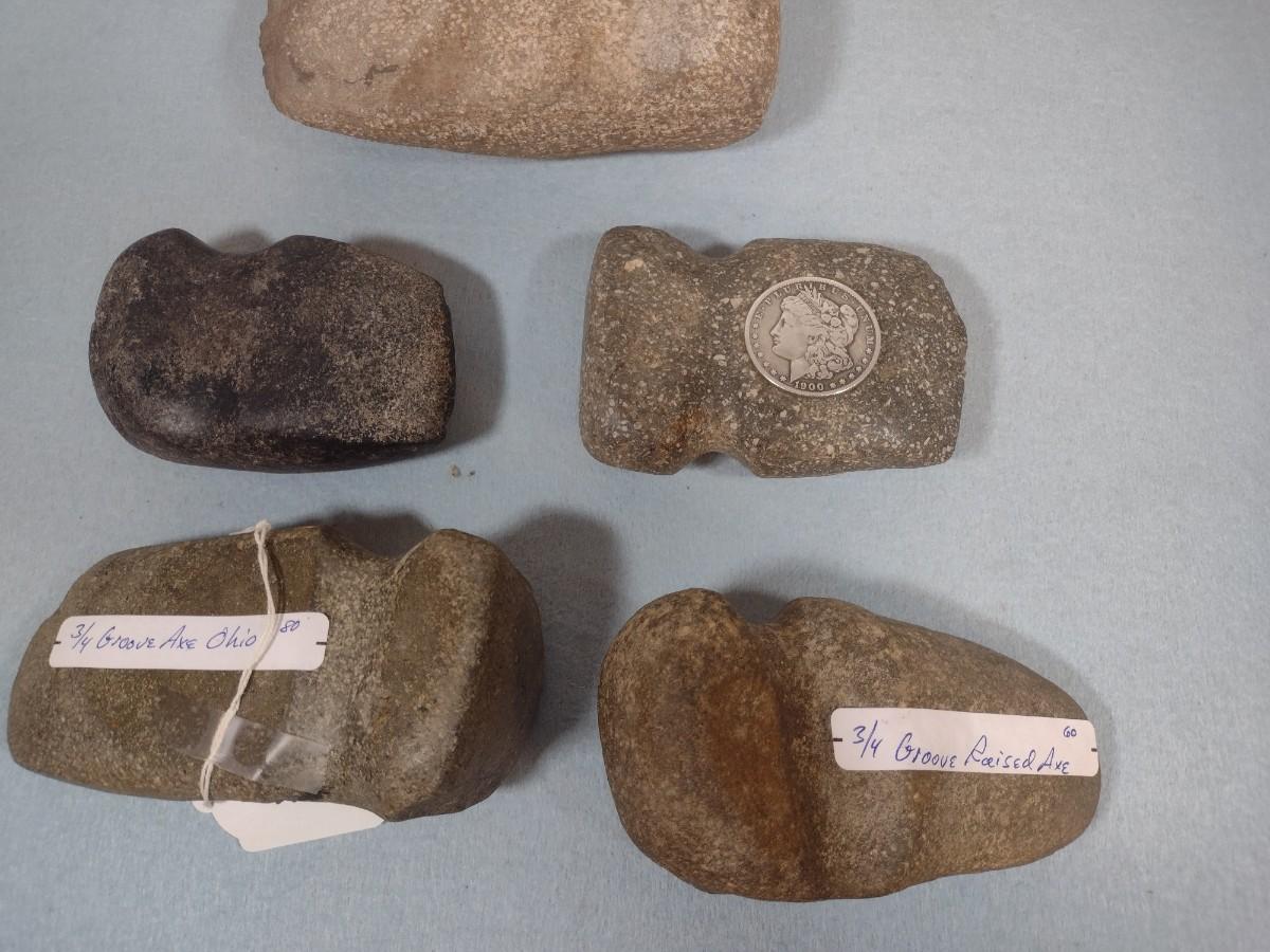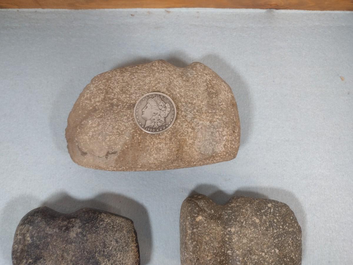 Set of Early Native American Grooved Stone Hammer Heads Dug at Various Sites #1