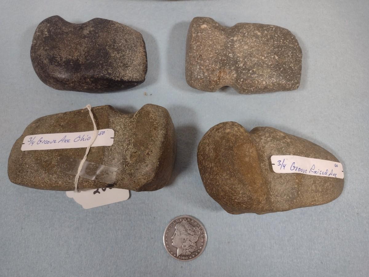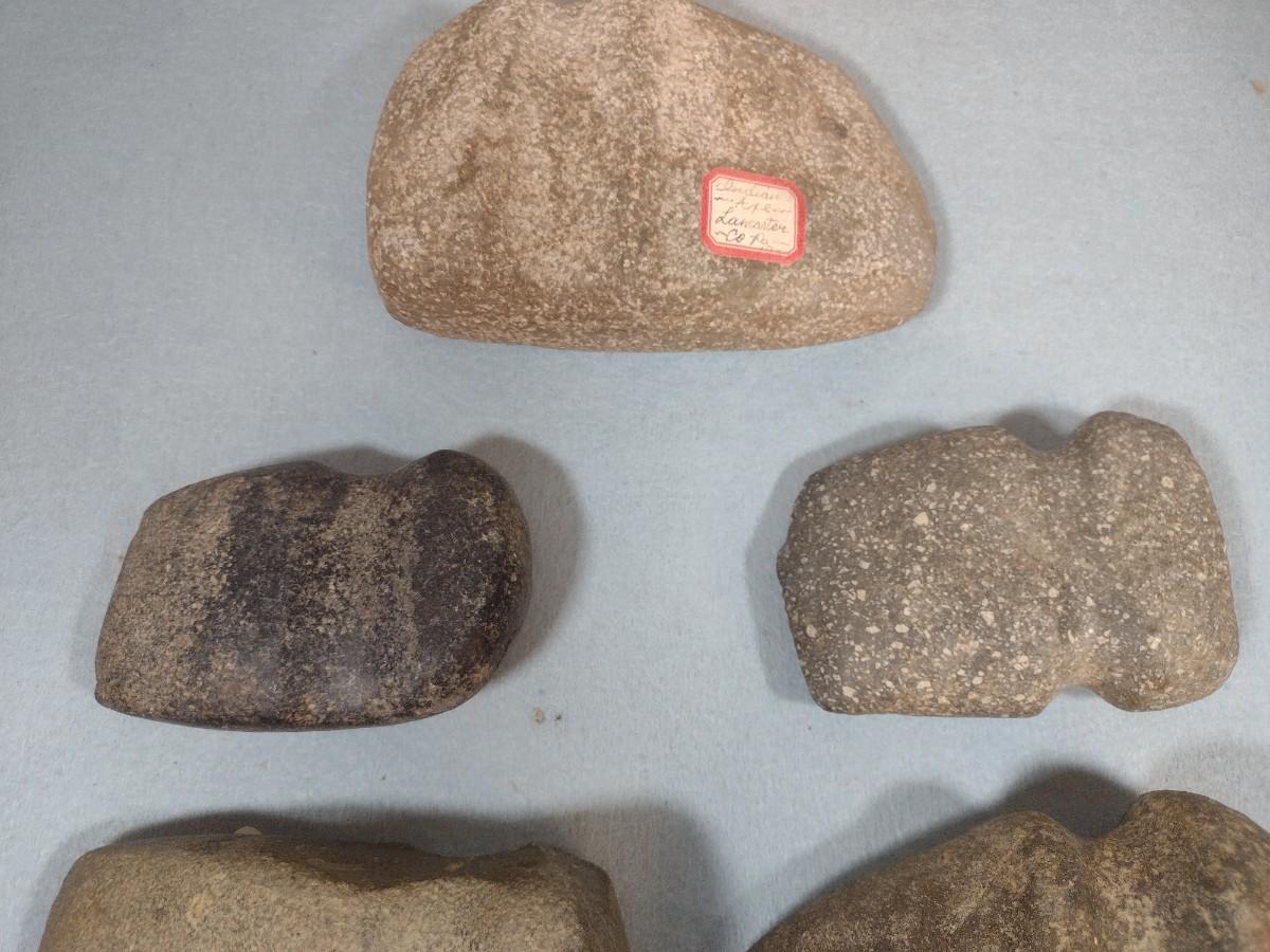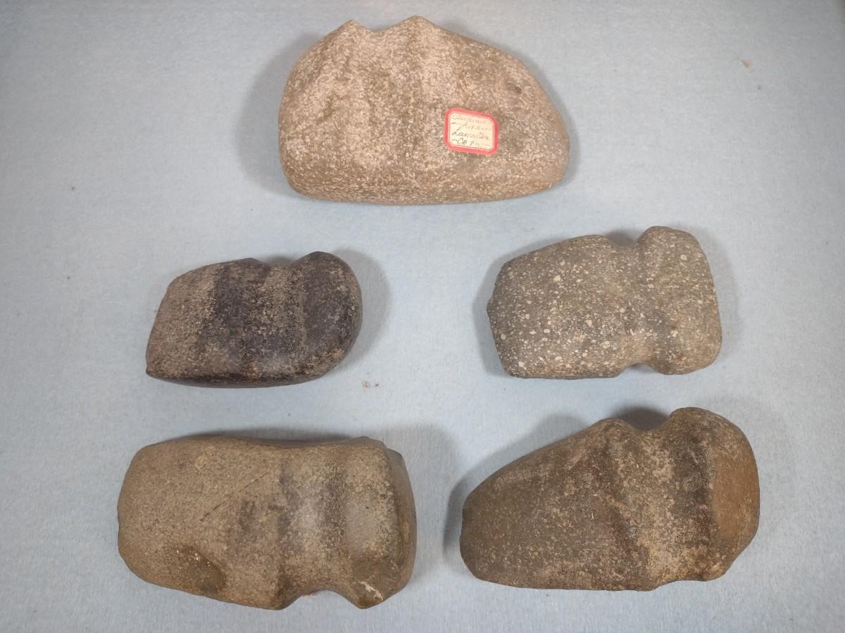 Set of Early Native American Grooved Stone Hammer Heads Dug at Various Sites #1