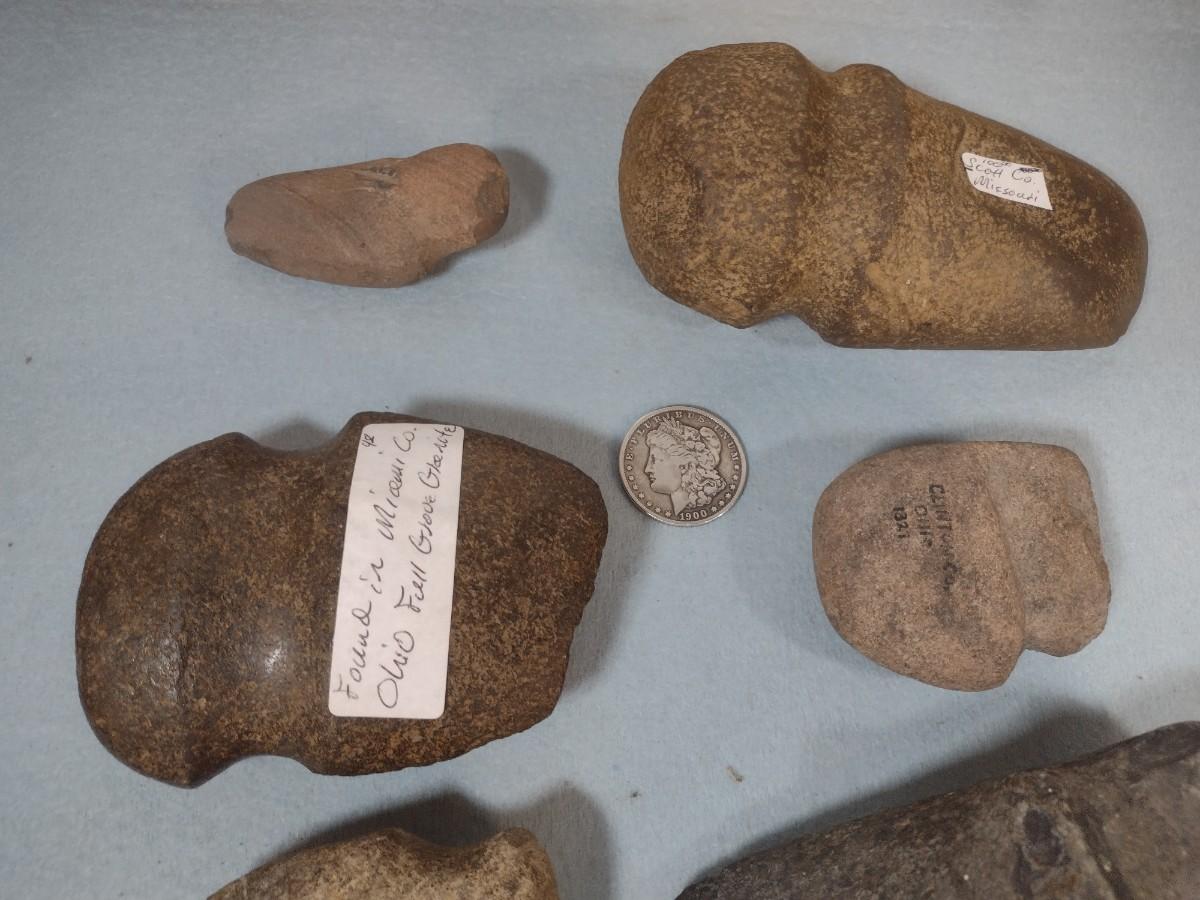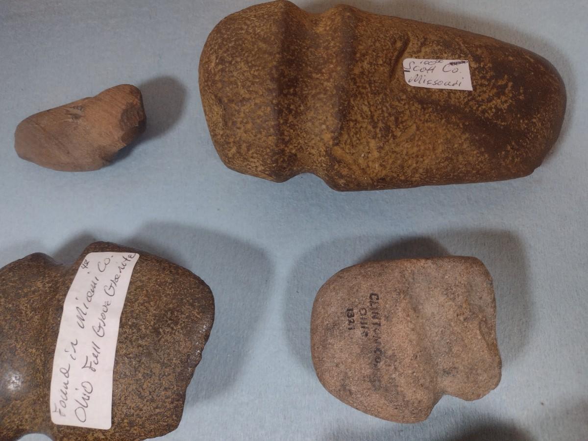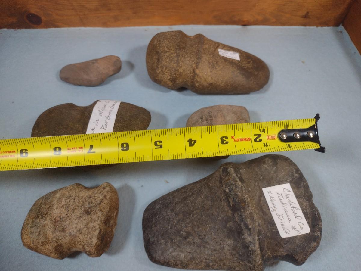Set of Early Native American Grooved Stone Hammer Heads Dug at Various Sites #7