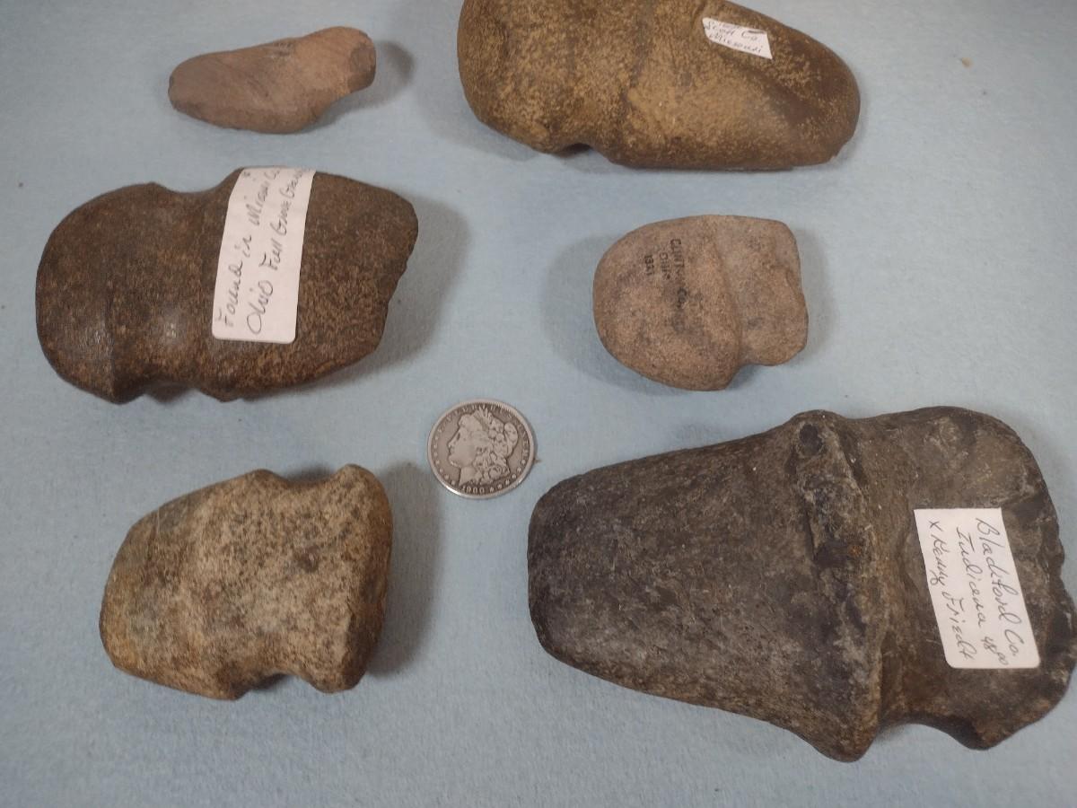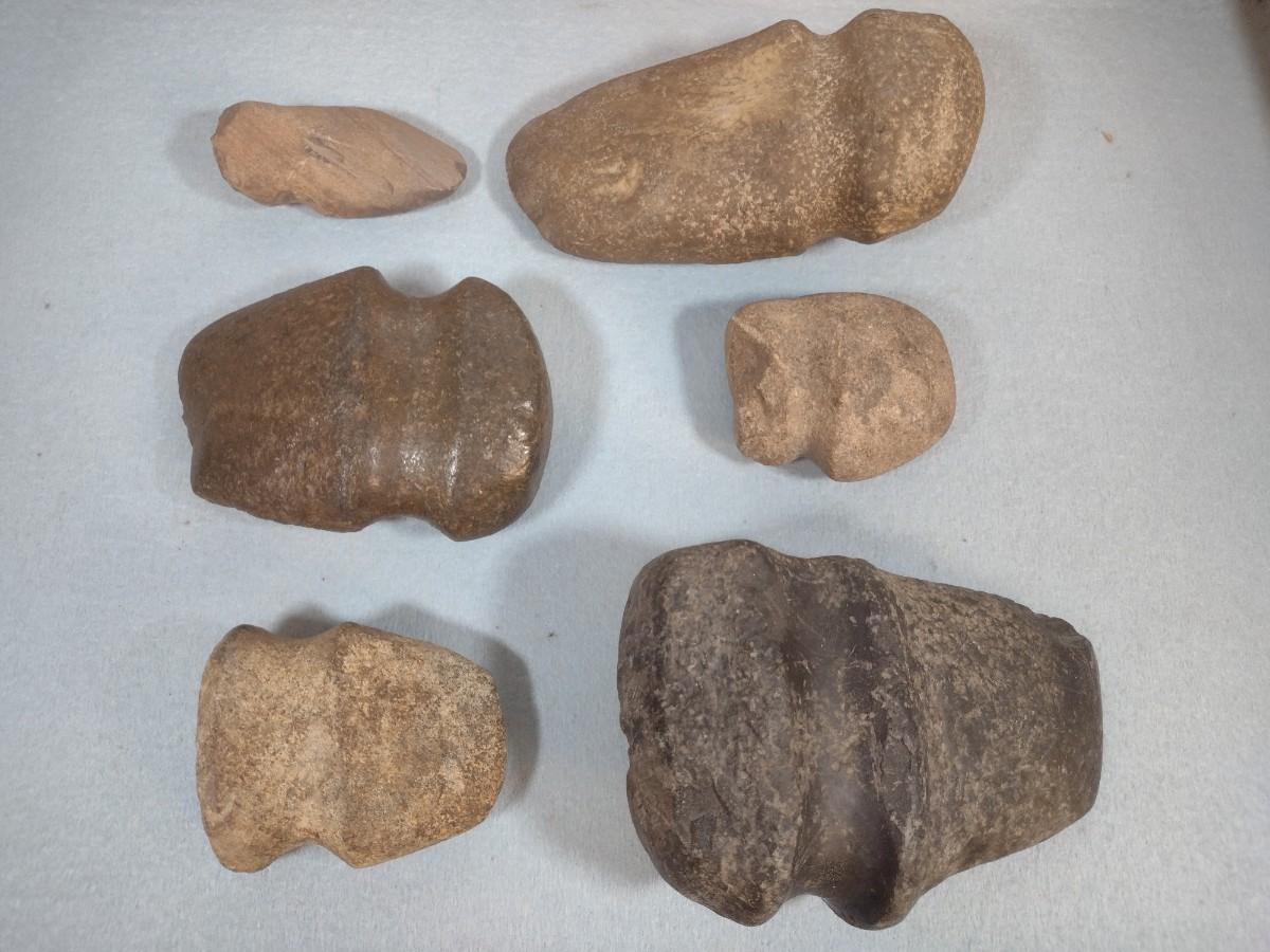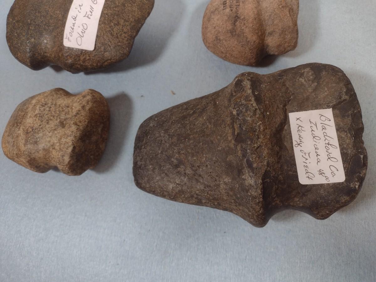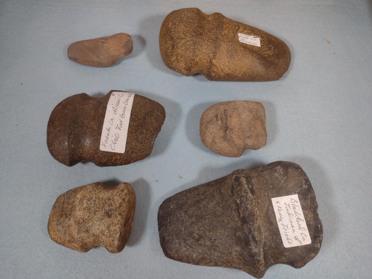 Set of Early Native American Grooved Stone Hammer Heads Dug at Various Sites #7