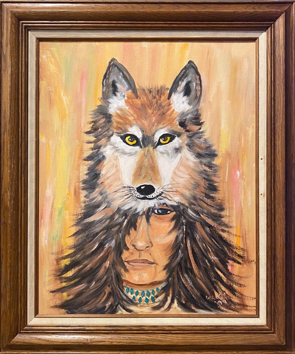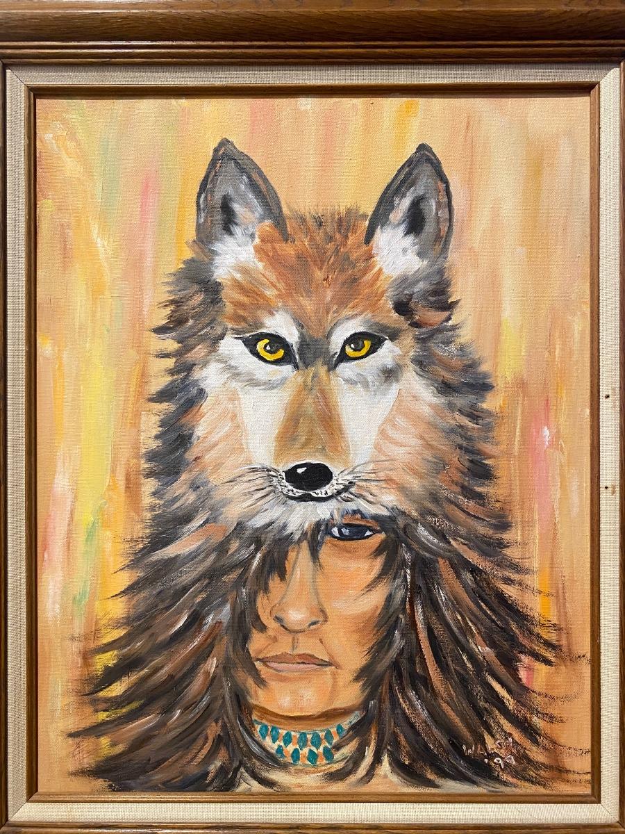 1999 Oil on Canvas. Native American Art by Dorothy Walsh - 20.5" W x 24.5" T. Signed and Framed