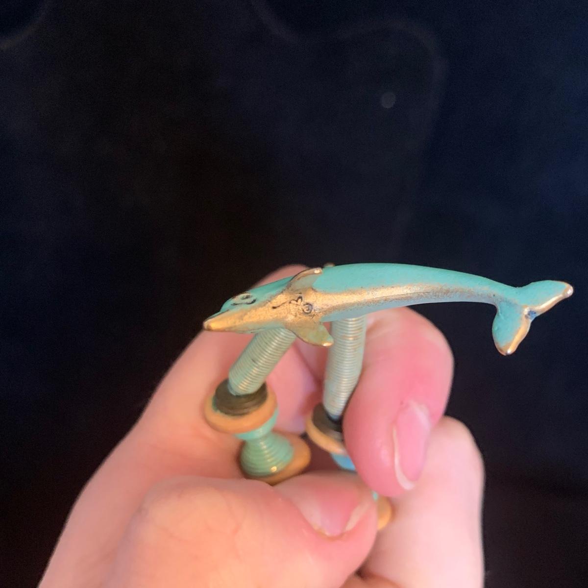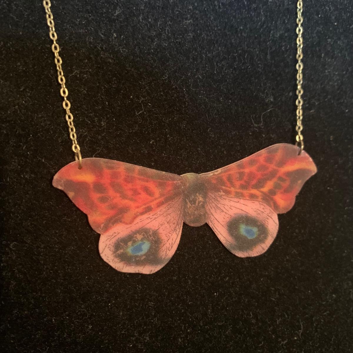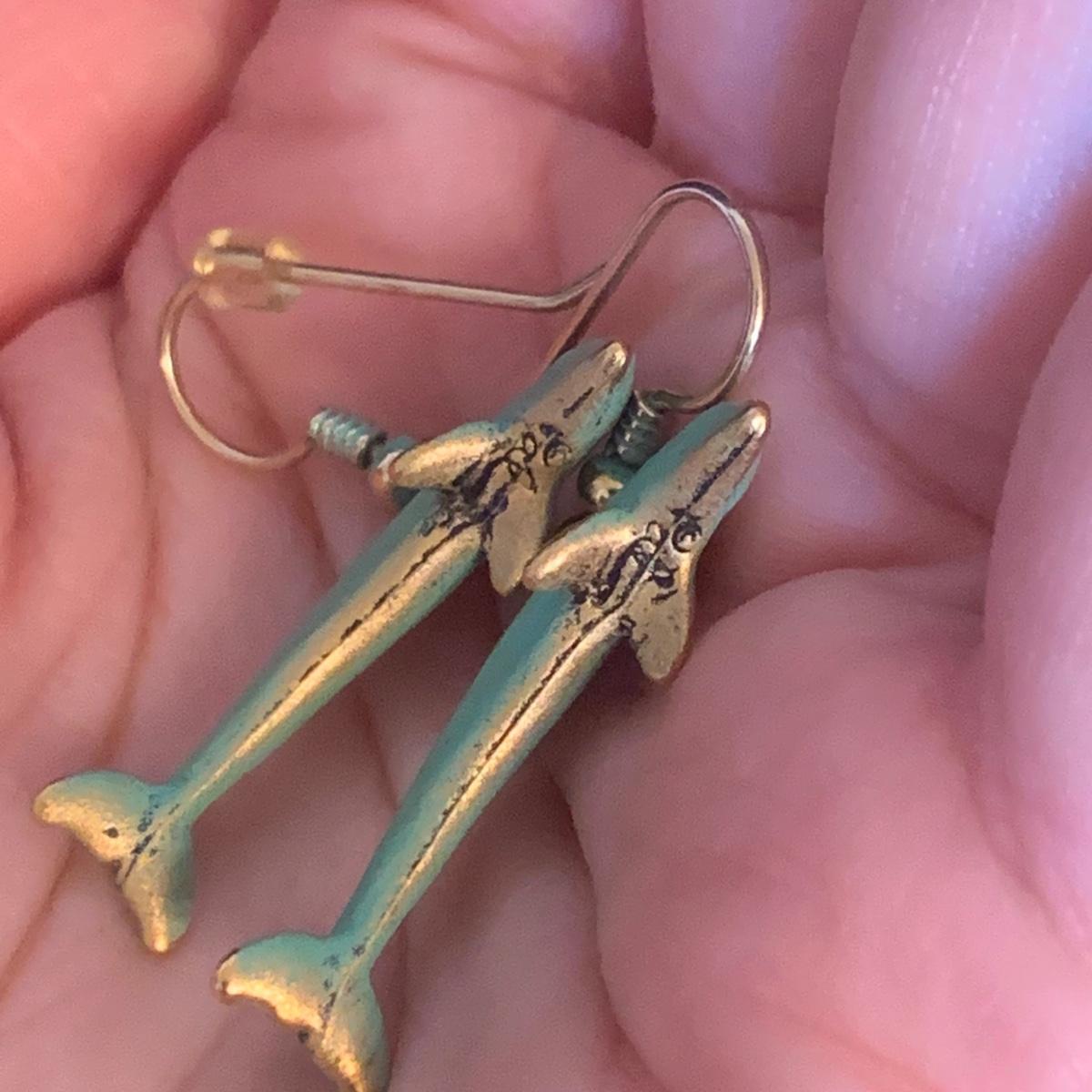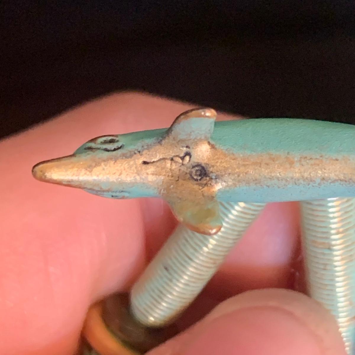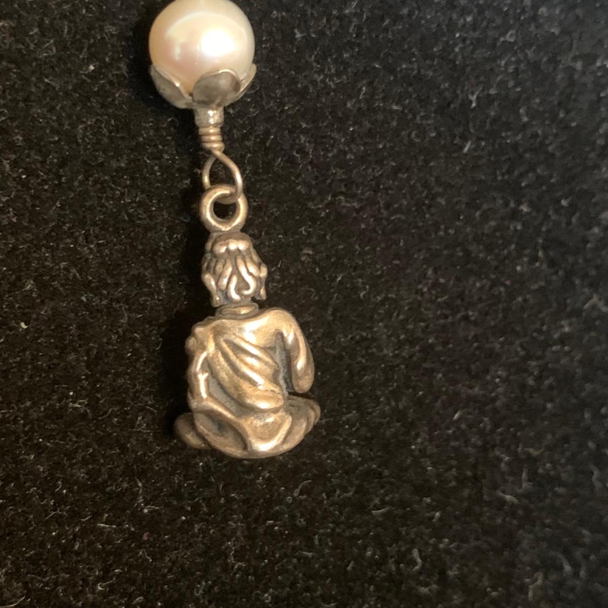 A collection of 15 necklaces plus a couple of loose clay beads. One necklace has a matching pair of earrings. According to the previous owner, the necklace with the metal dolphin pendant, its matching metal earrings, and the white heishi beaded necklace with bird fetishes are Native American made. The necklaces are made from a variety of materials. Most have beads. There is some metal, some leather? And one fabric necklace. Necklaces range from 18”-34”.
