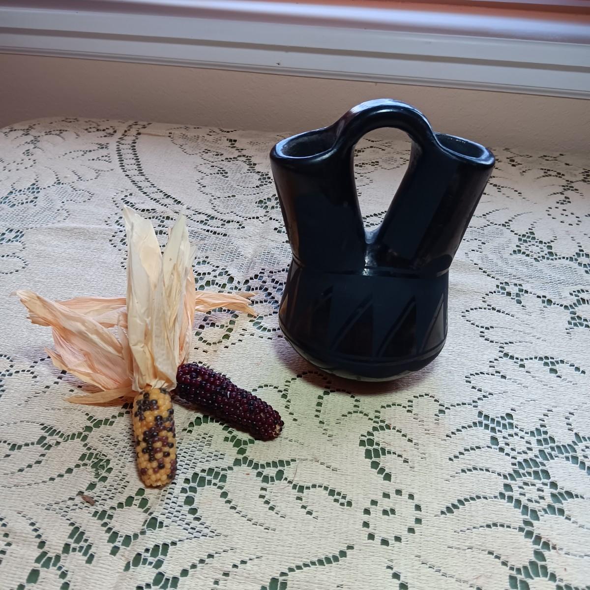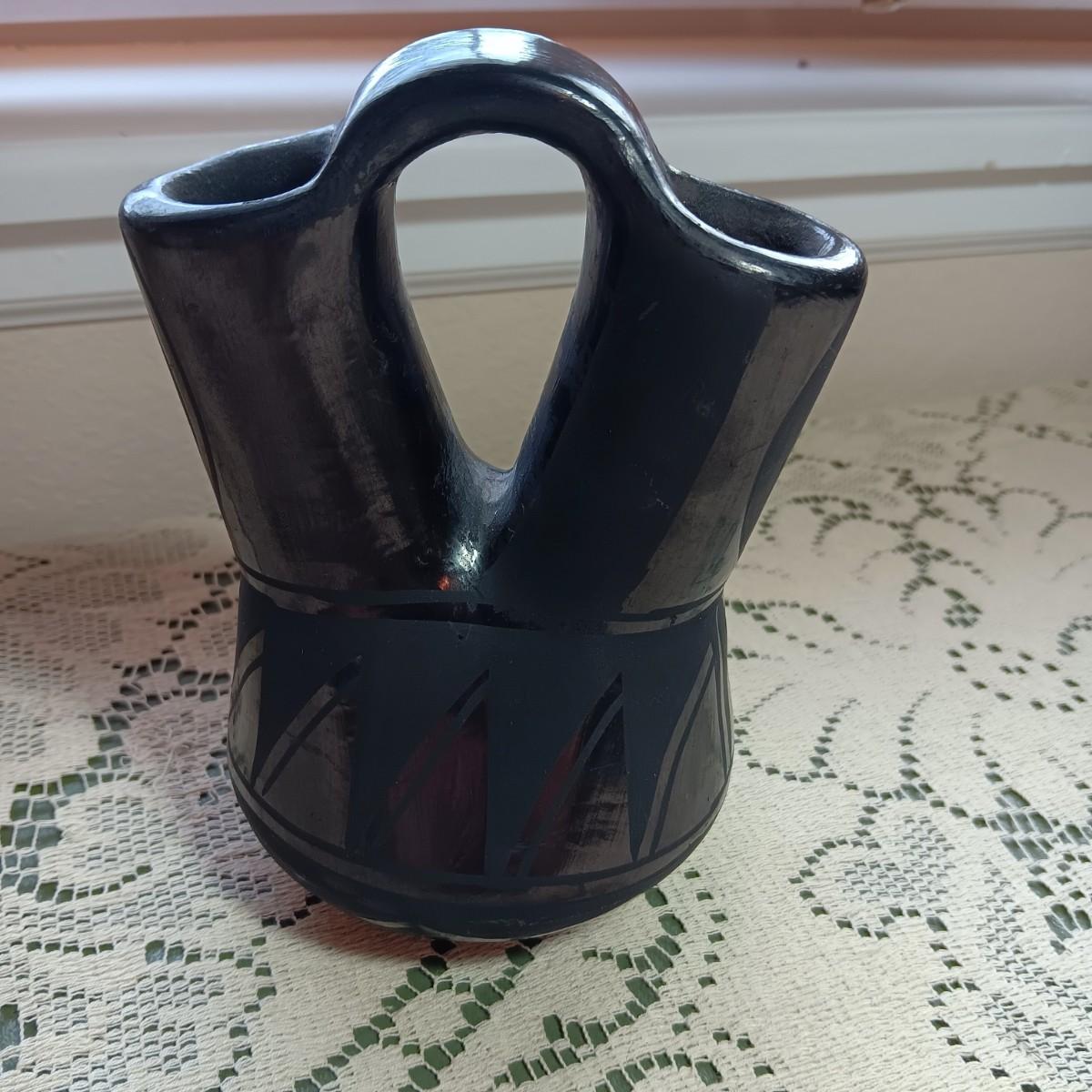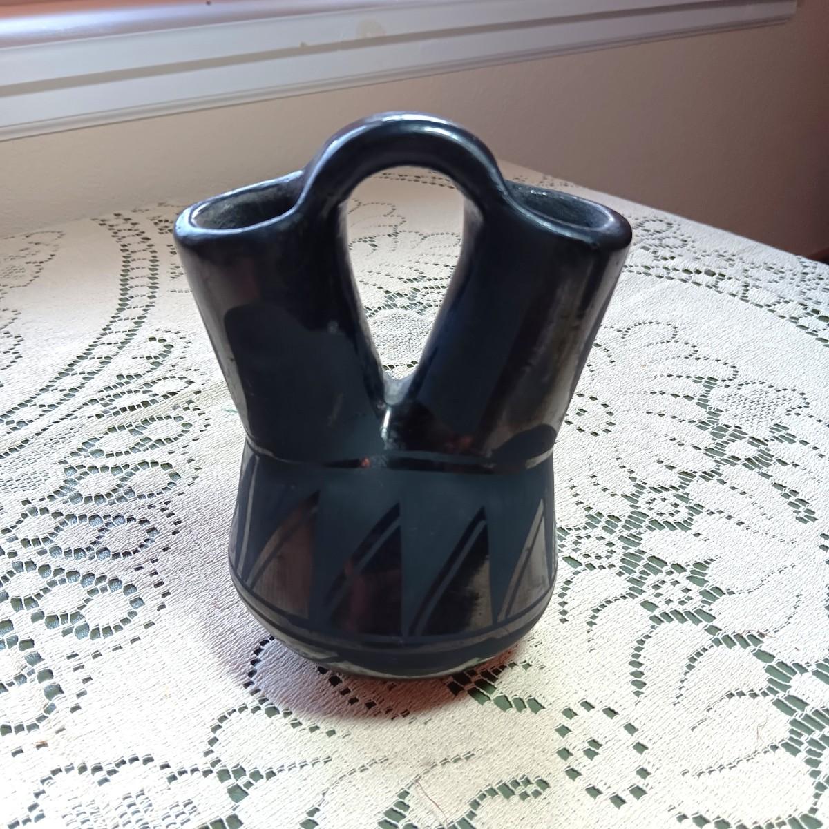 SIGNED NATIVE AMERICAN BLACKWARE WEDDING VASE