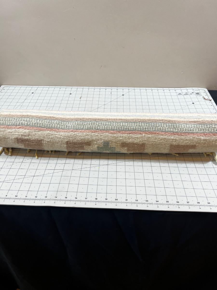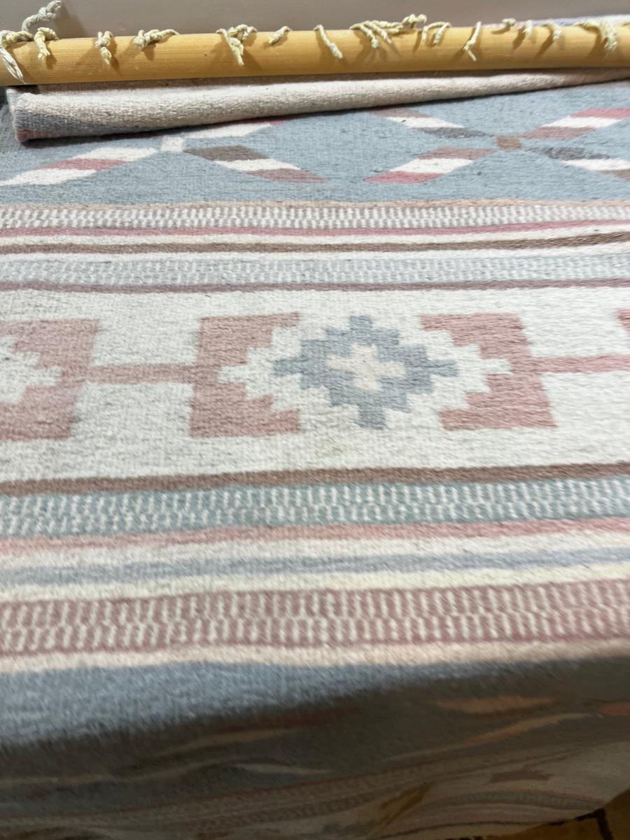 25" Wide X 58" Long. Modern South western Mauve & Powder Blue Colors