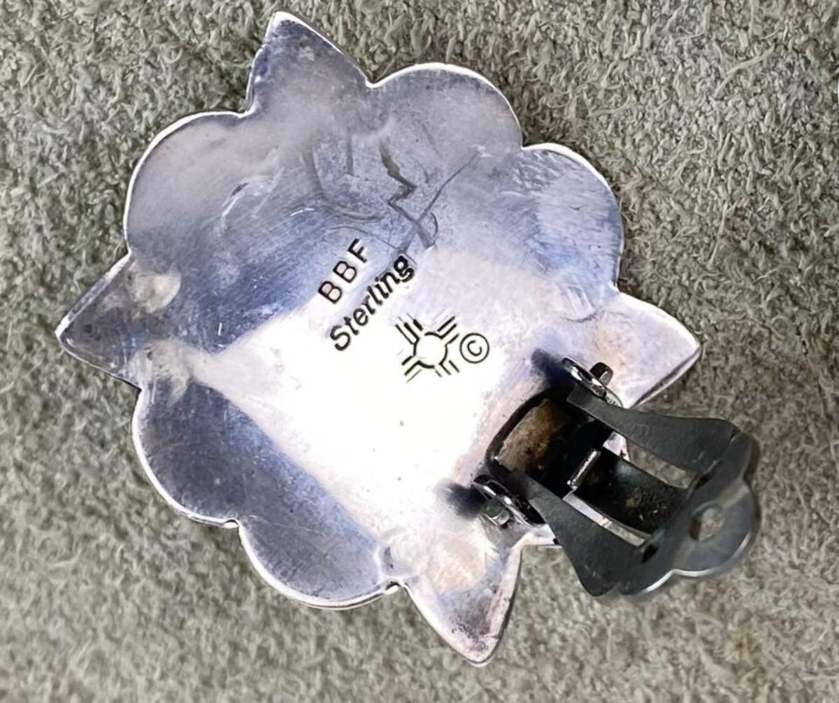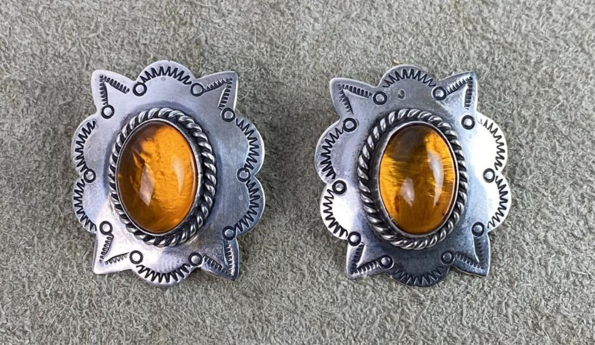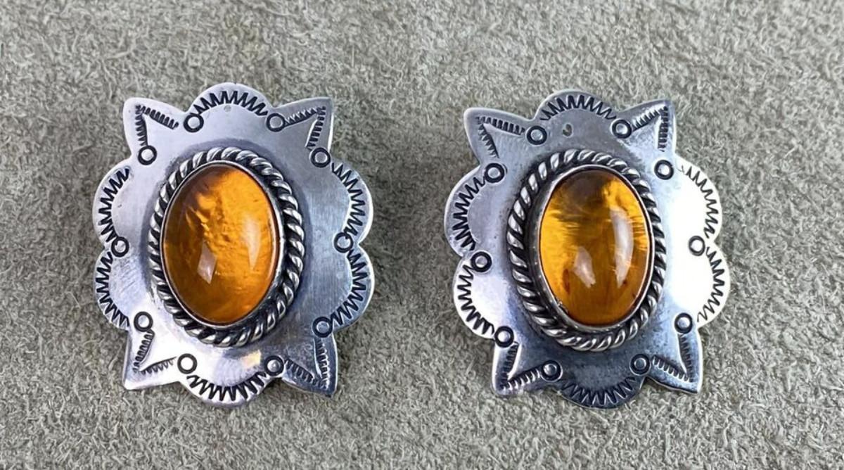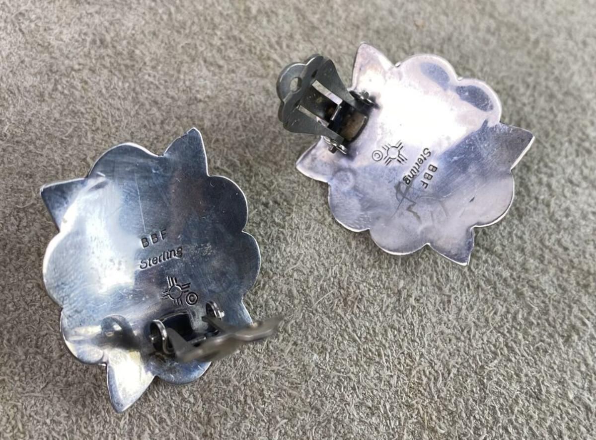 Native American Bobby Francis BBF Sterling & Amber Clip Earrings