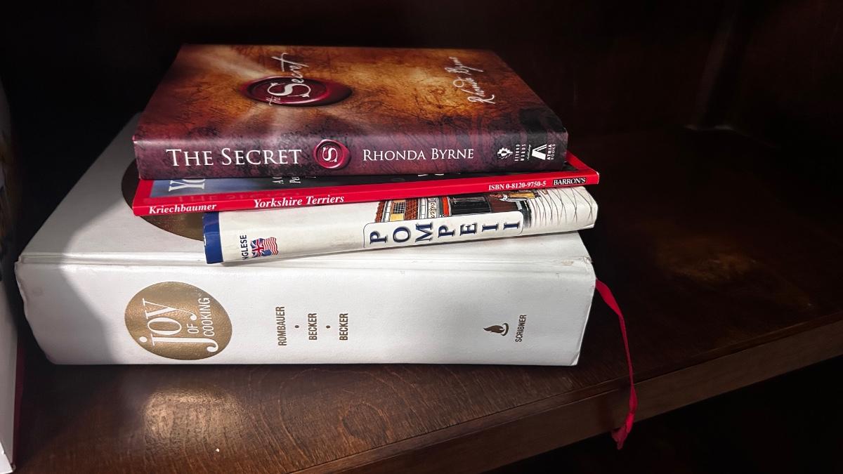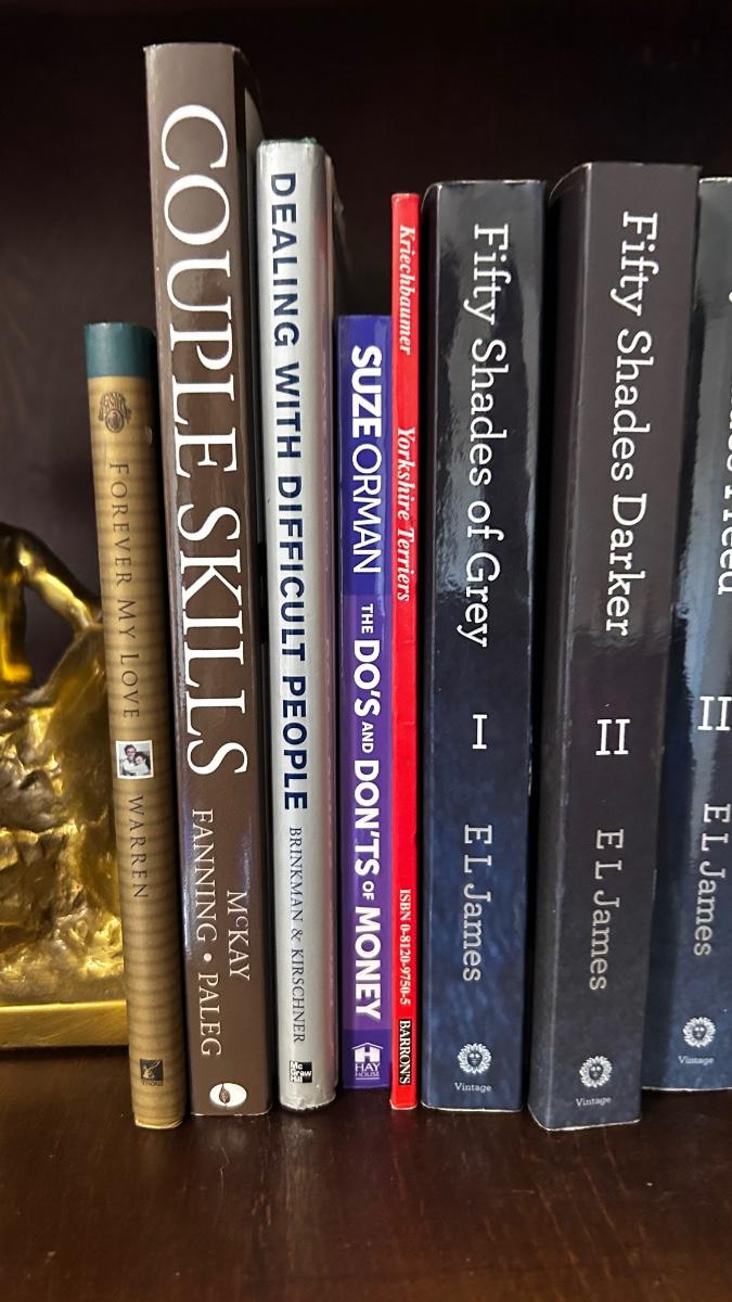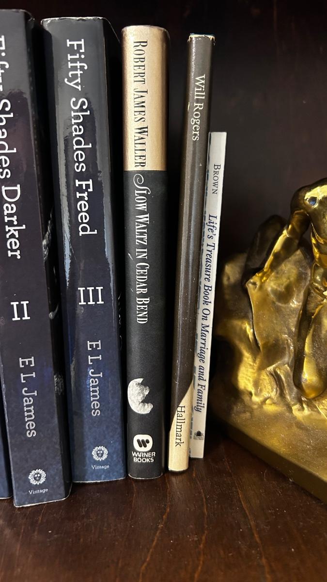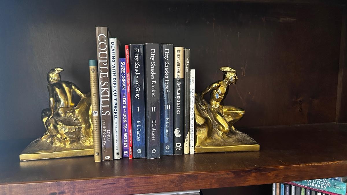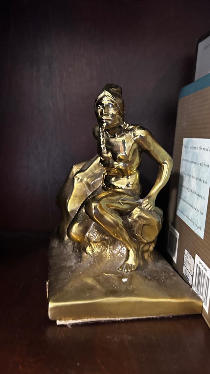 NATIVE AMERICAN THEMED BRASS BOOKENDS AND A VARIETY OF BOOKS