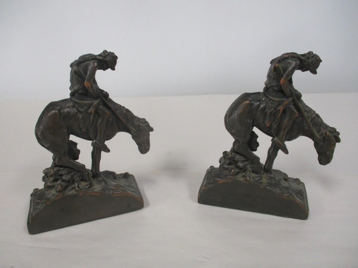 Pair of Vintage Native American 'End of Trail' Bronze Bookends