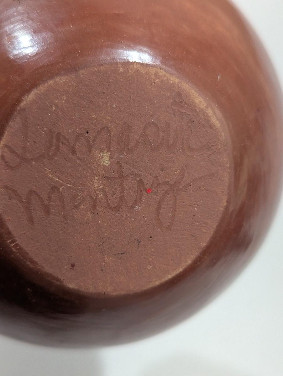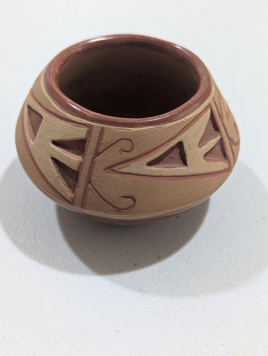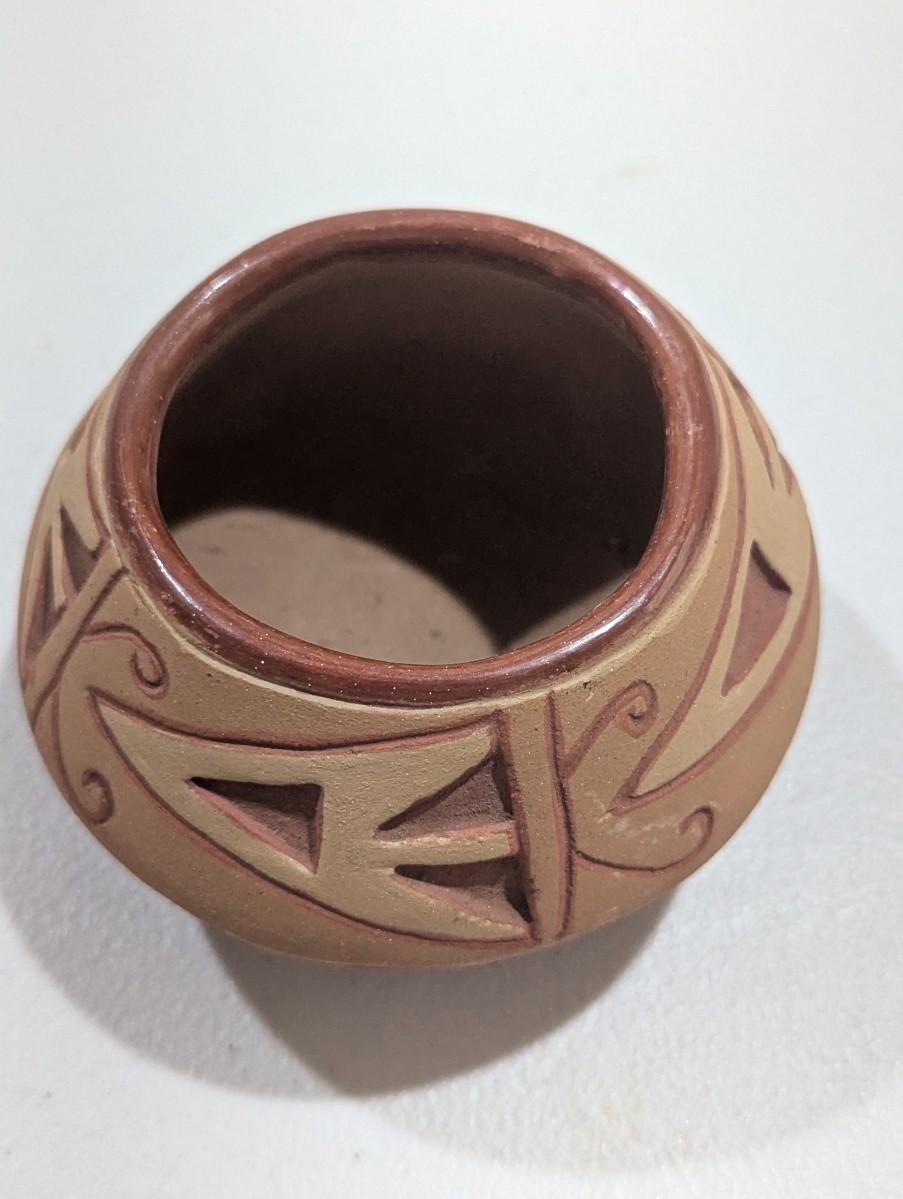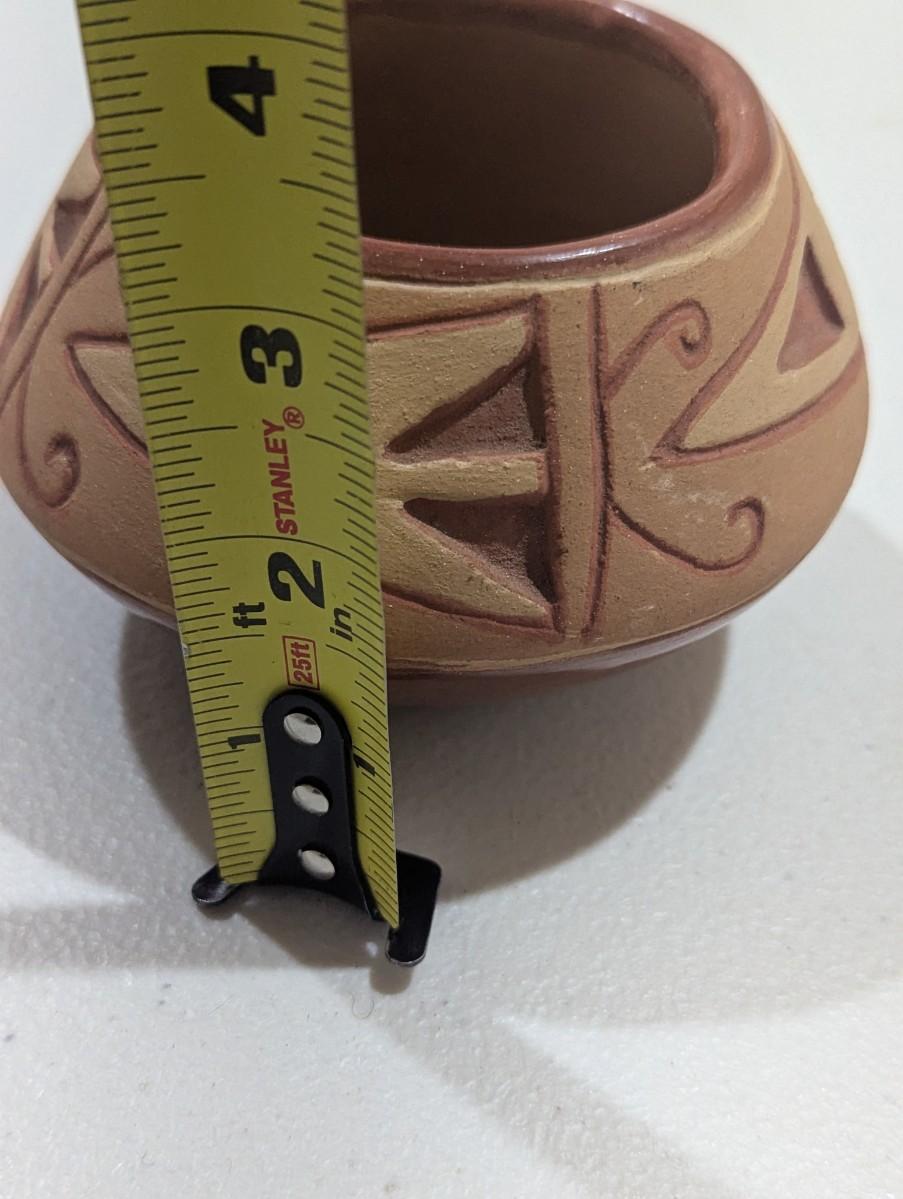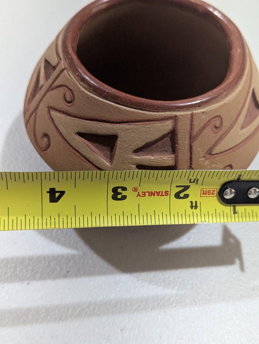 Native American Carved Red Pottery Bowl 4 1/2" Signed (SR)