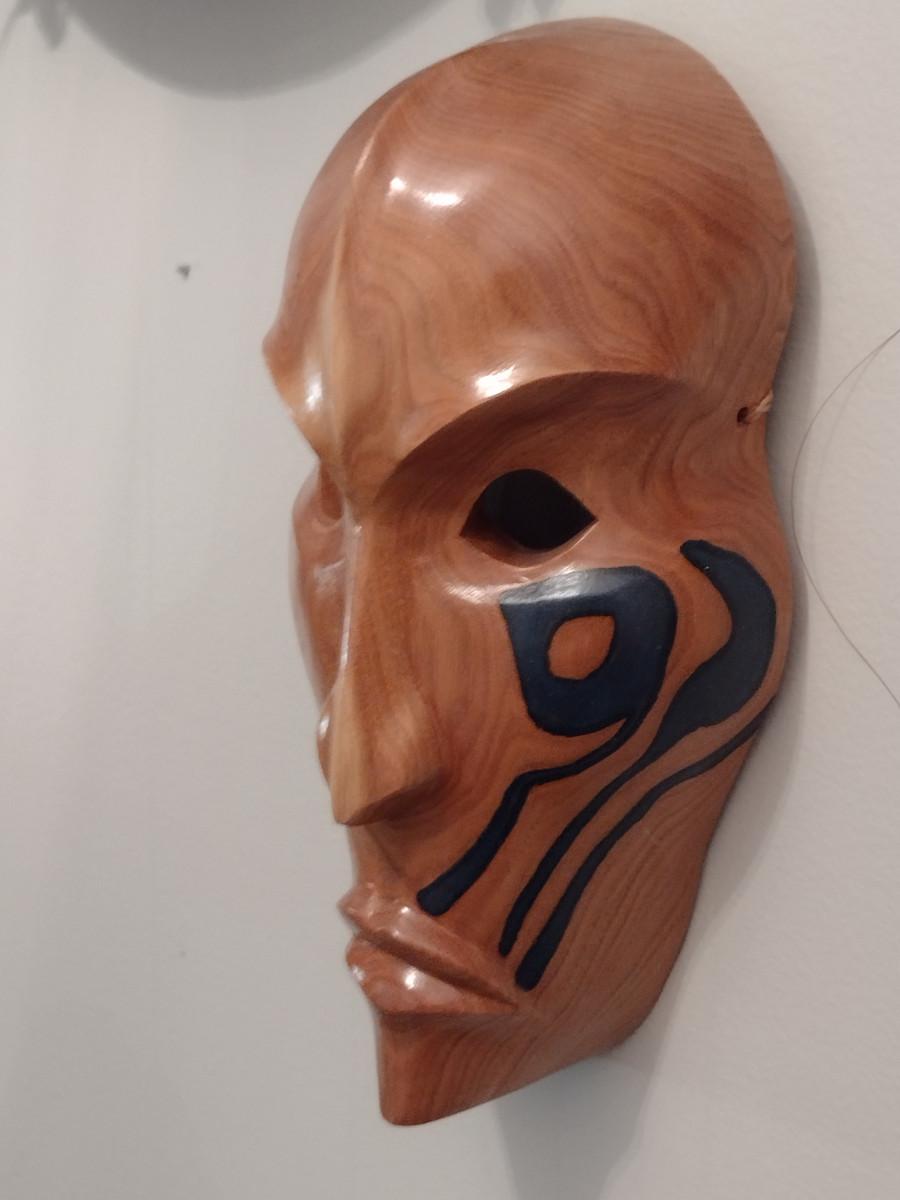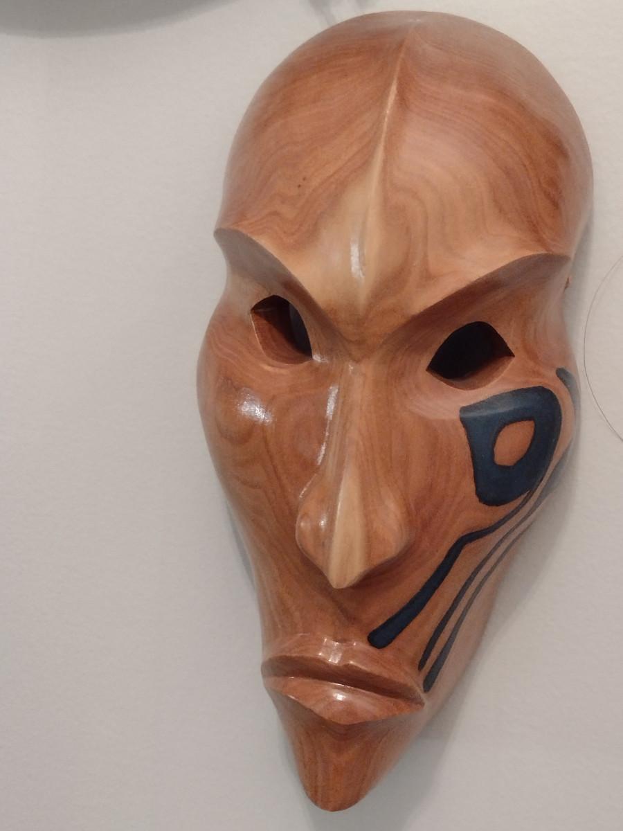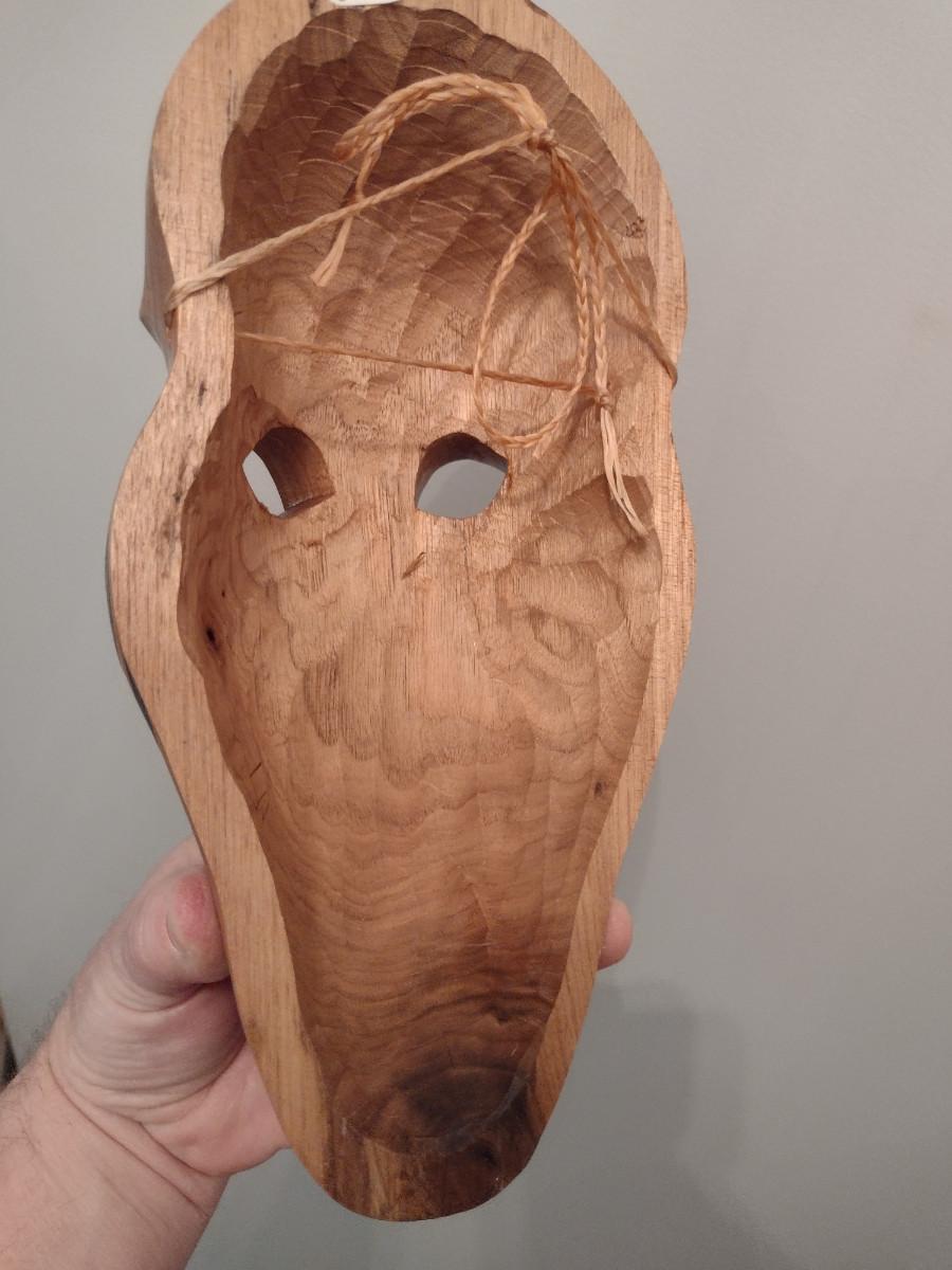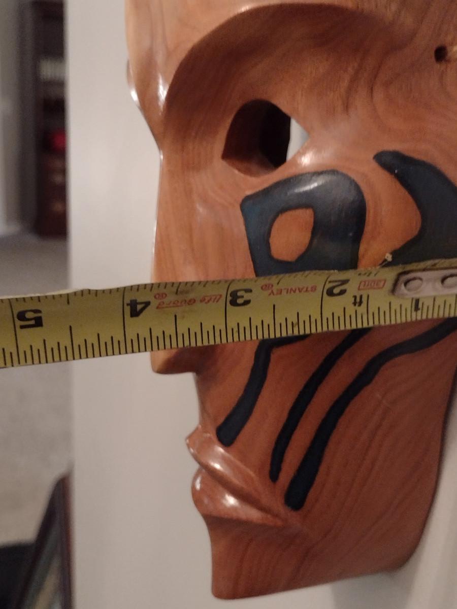 Signed, Native American Cherokee Blue Clan Hand Carved Wooden Mask- Measures Approx 10" x 5" x 3 3/4" Deep