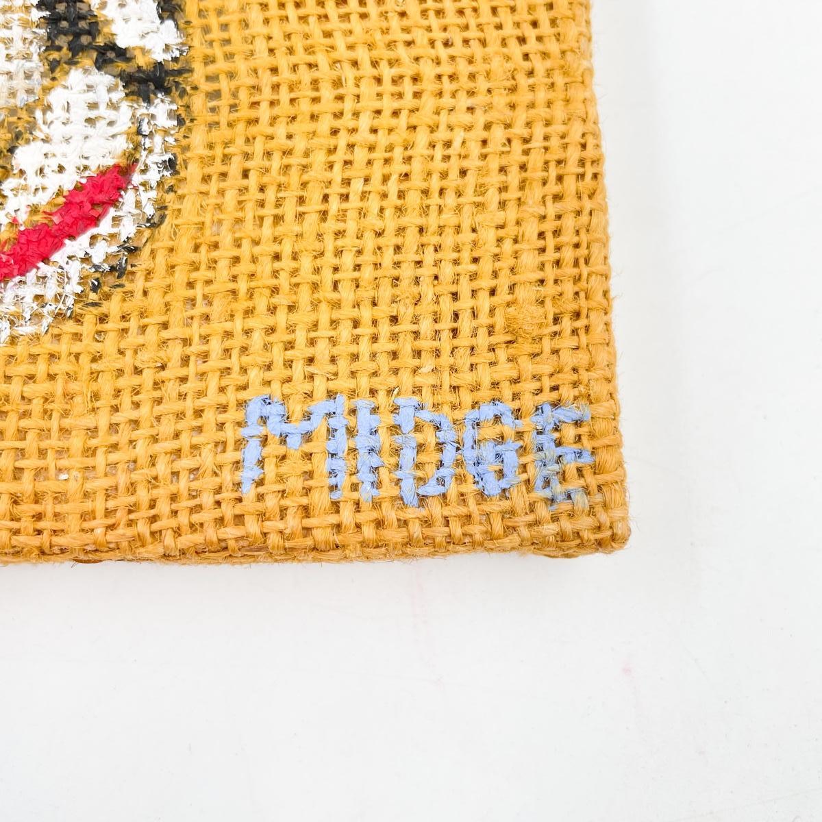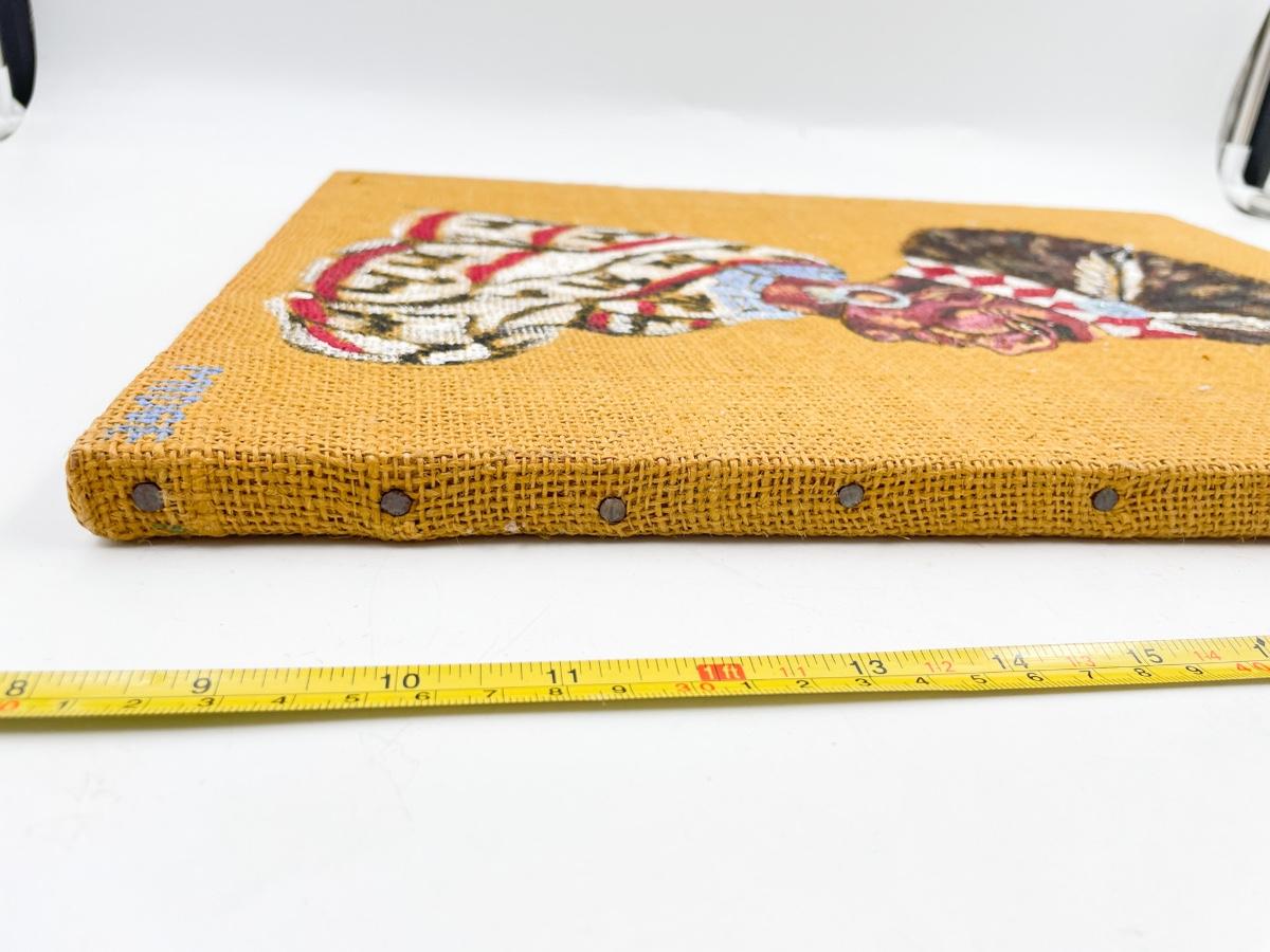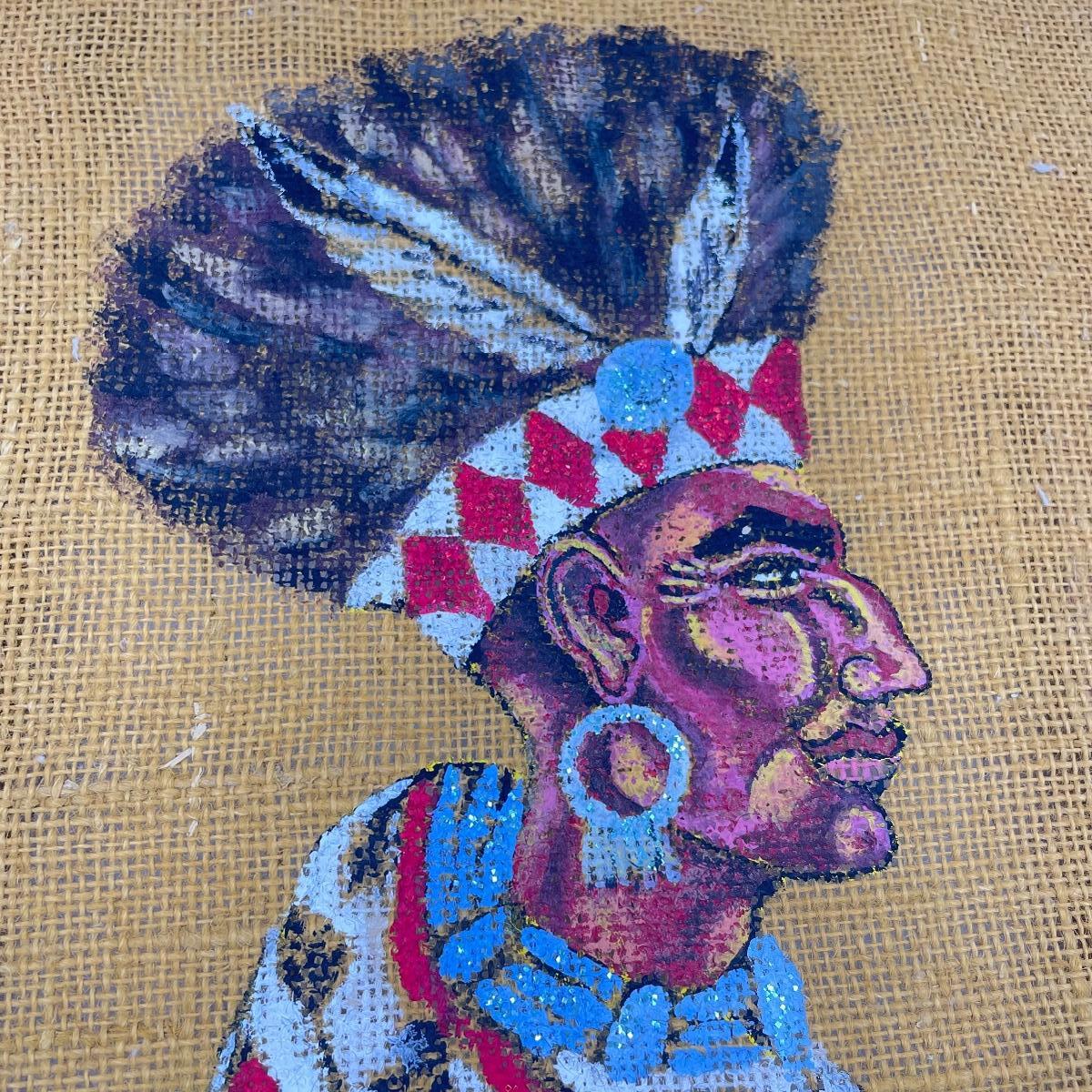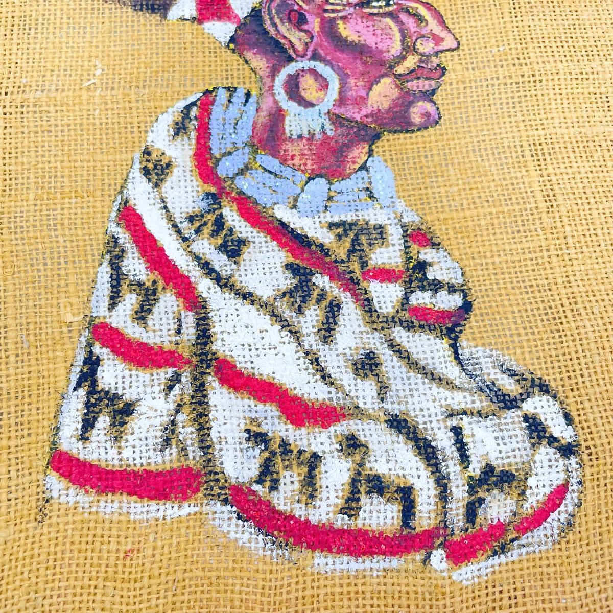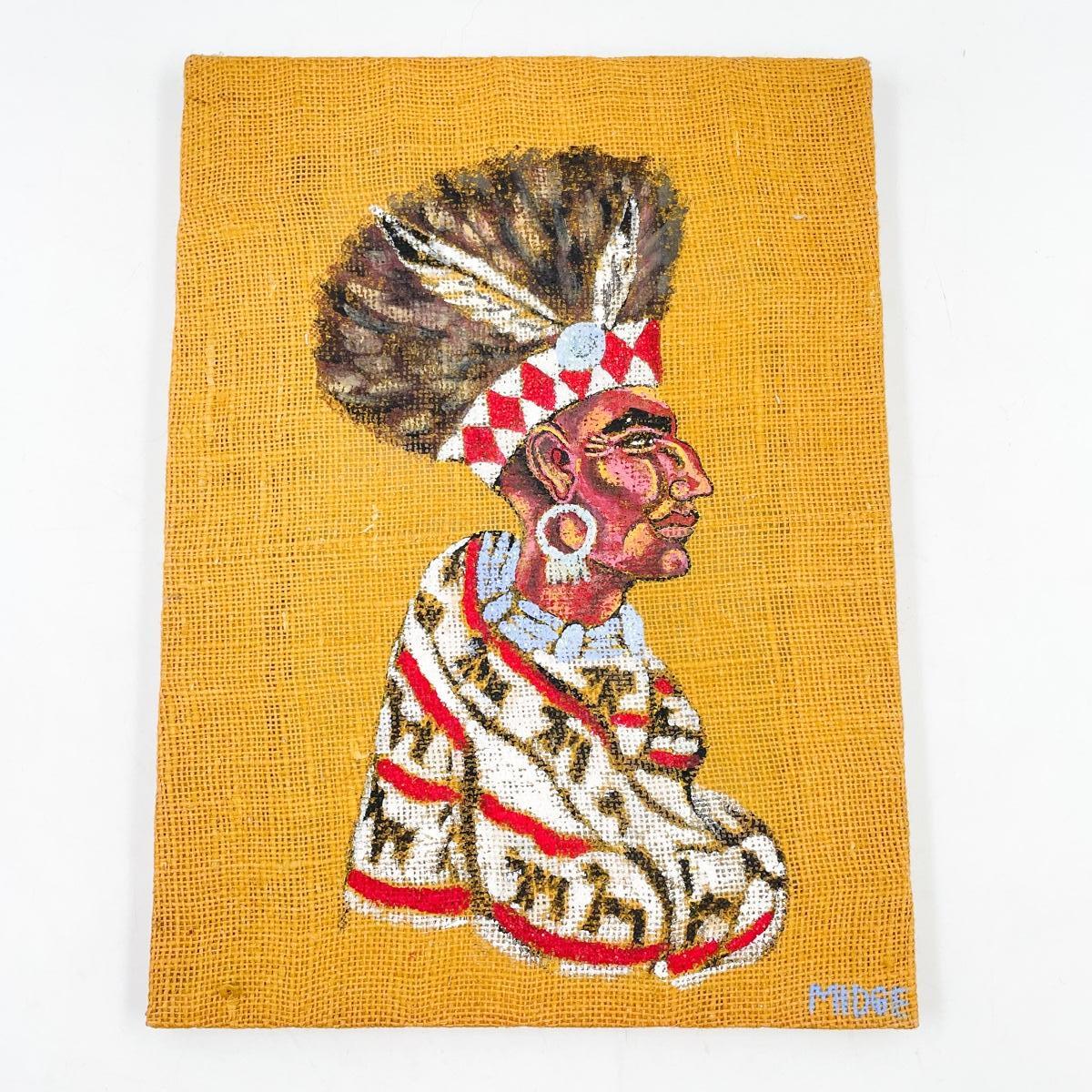 NATIVE AMERICAN CHIEF PAINTING ON BURLAP - SIGNED “MIDGE”