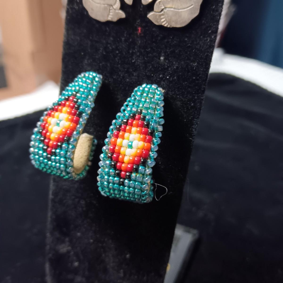 NATIVE AMERICAN CRAFTED STERLING COYOTE EARRINGS AND BEADED PIERCED EARRINGS