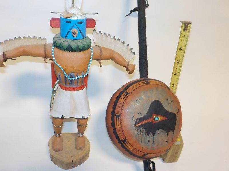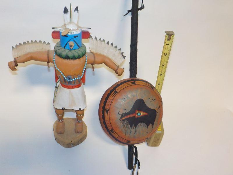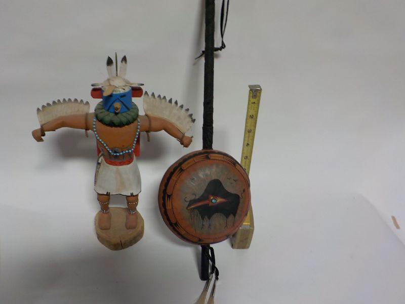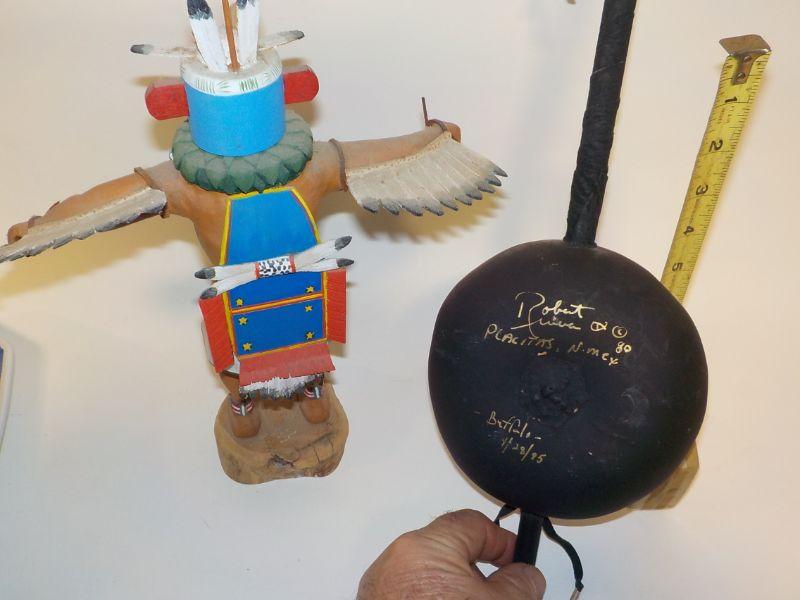 Native american doll and Robert Rivera signed buffalo gourd rattle. KWA kachina doll.