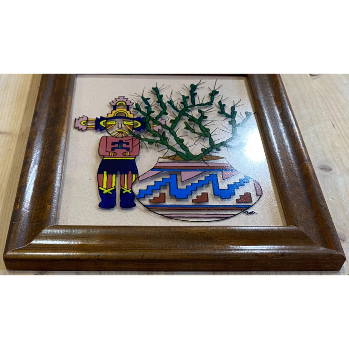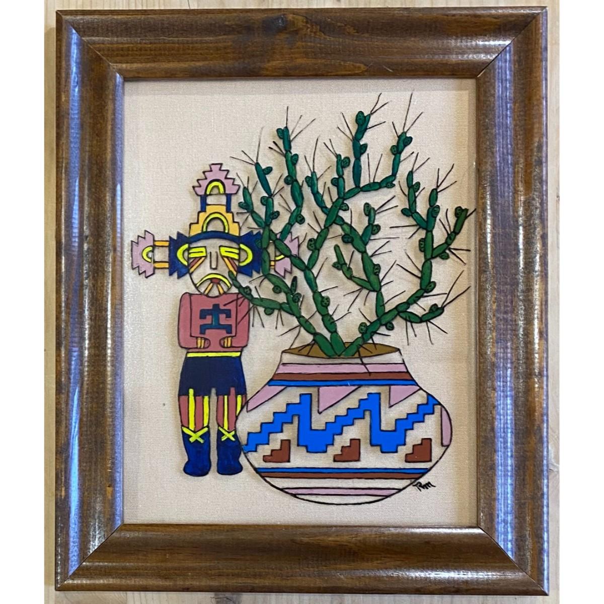 Native American Framed Painted Colorful Glass By RM Southwestern Cactus Vase
