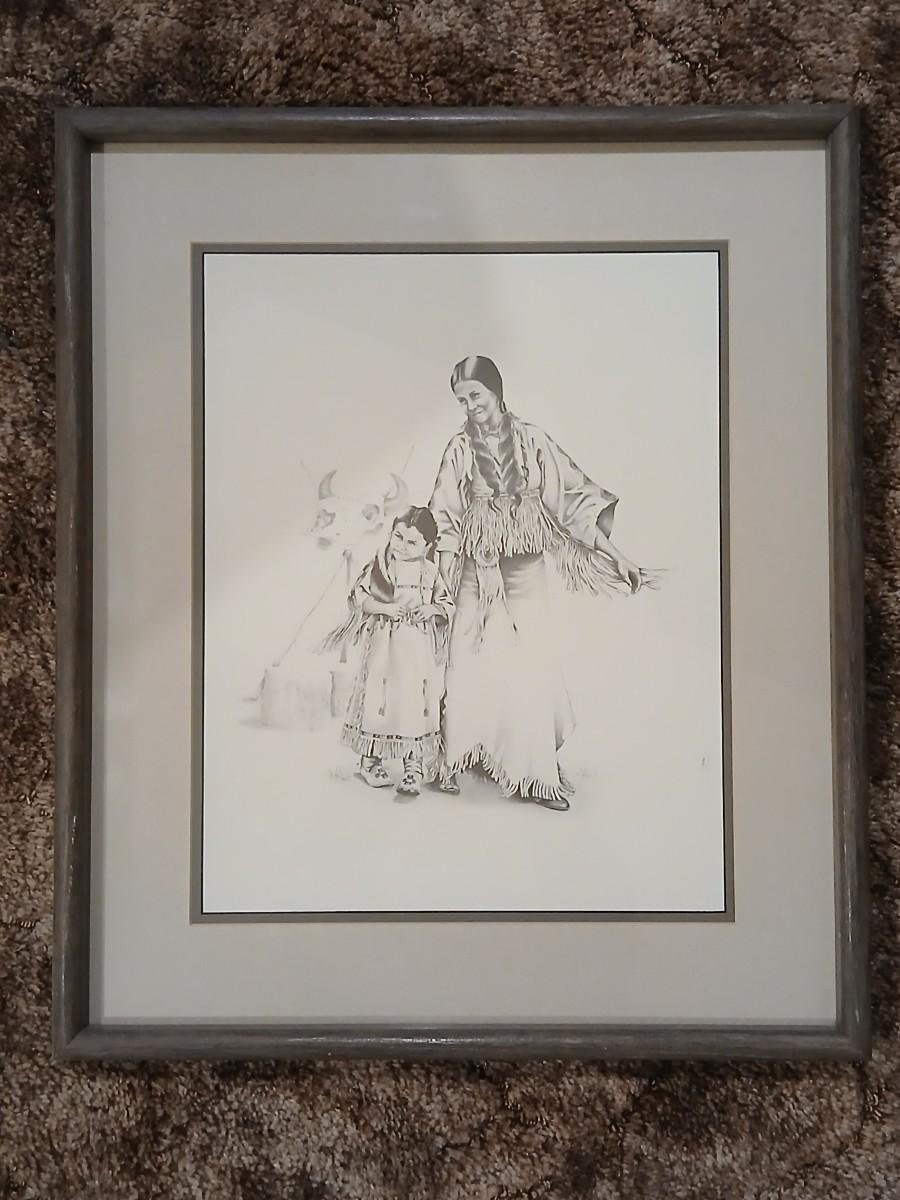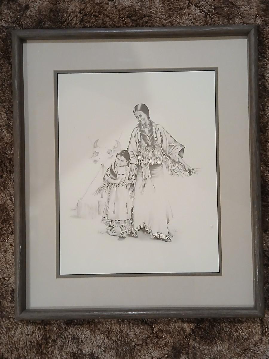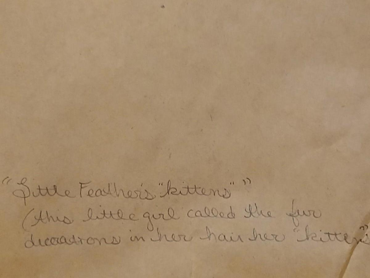 Native American framed print - unknown artist - written on back "Little Feather's Kittens"