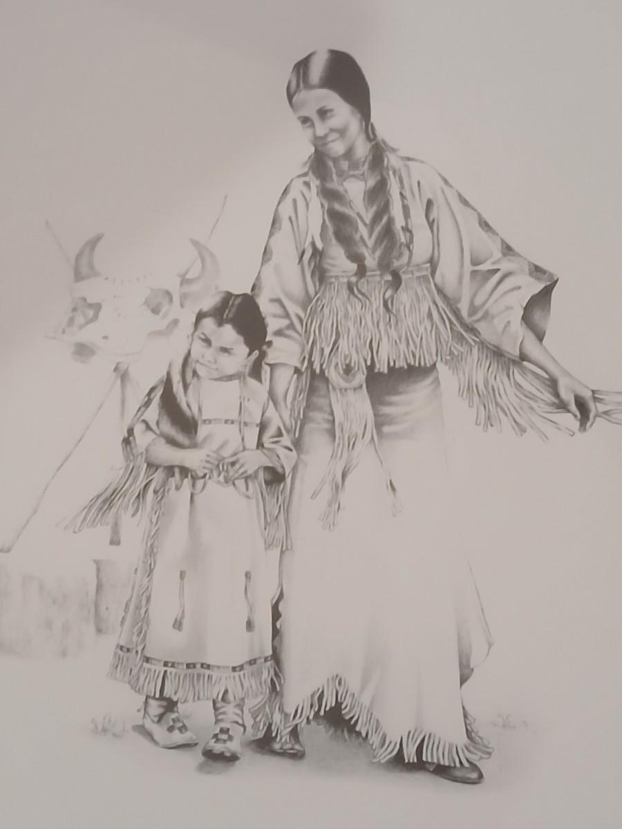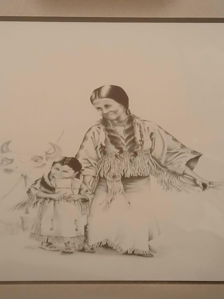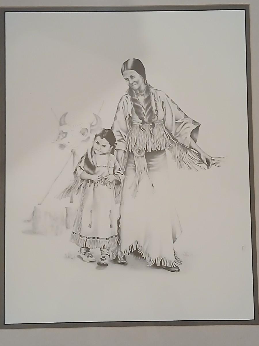 Native American framed print - unknown artist - written on back "Little Feather's Kittens"