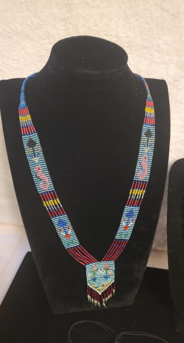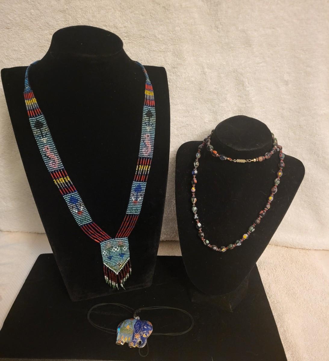 NATIVE AMERICAN GLASS BEAD NECKLACE, ELEPHANT AND BEADED NECKLACES