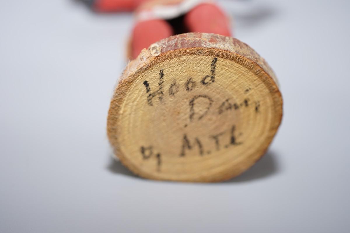 two smaller katchina at 7" and 3" ( corn) the hood dancer at 7" is signed on the base M.T .L