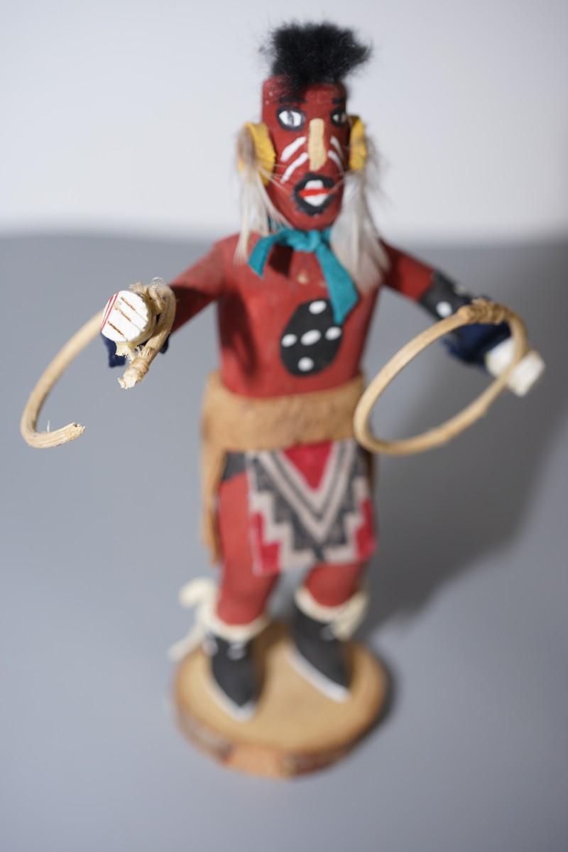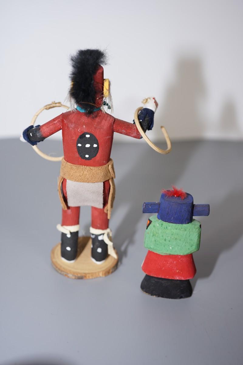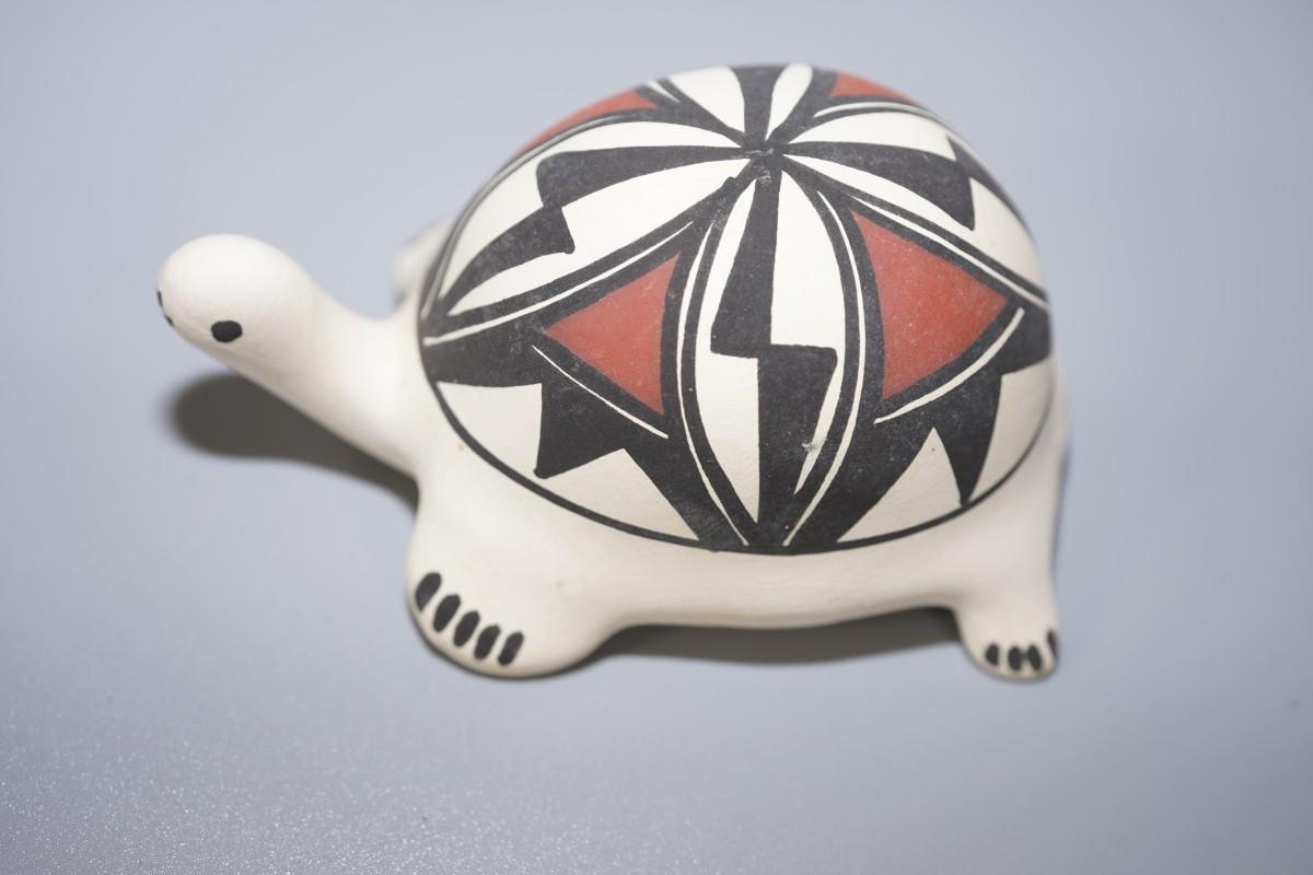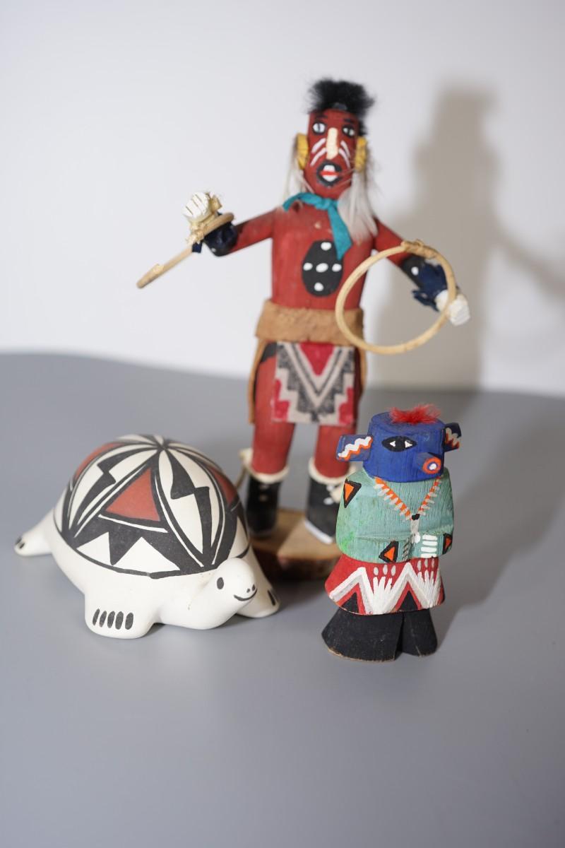 NATIVE AMERICAN GROUPING TO INCLUDE ACOMA POTTERY TURTLE, TWO KATCHINA'S 7" HOOP DANCER