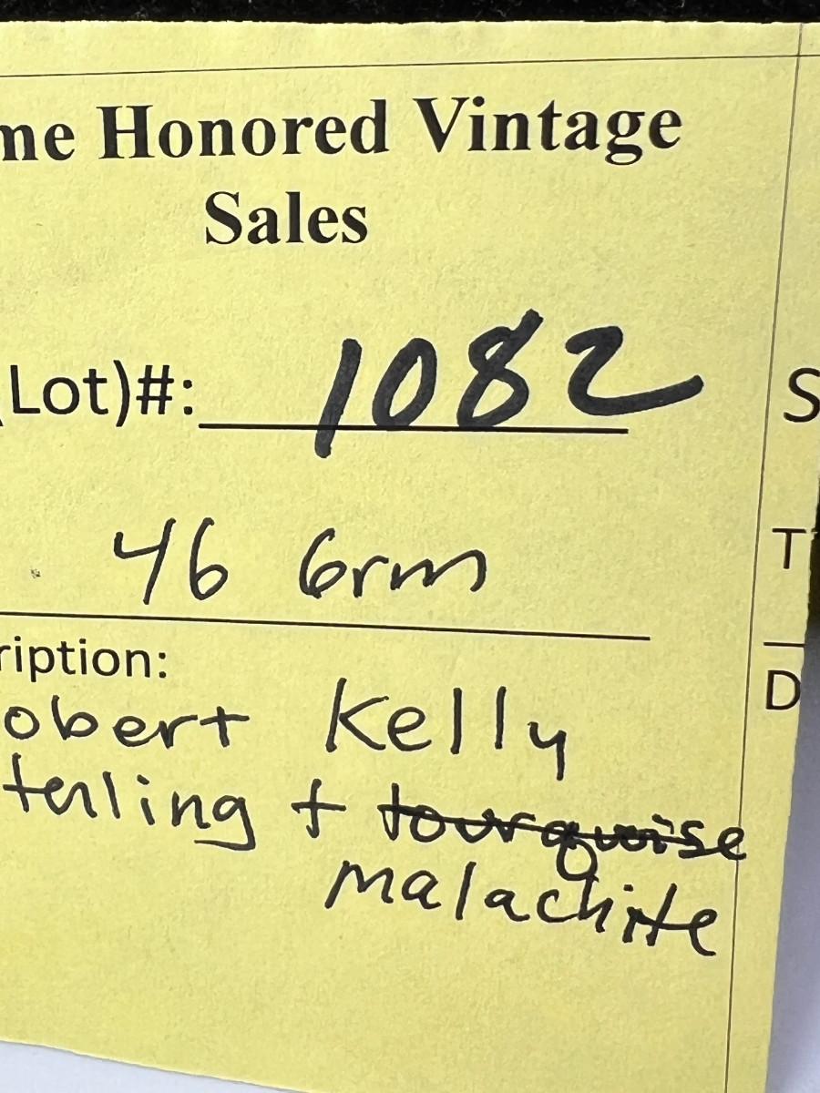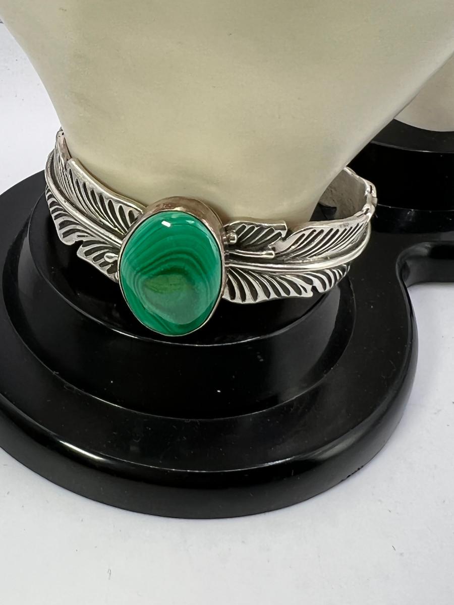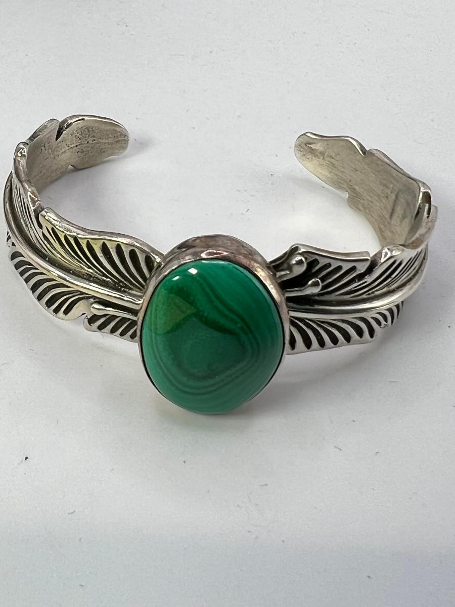 Native American hallmark Robert Kelly Sterling cuff bracelet with malachite stone