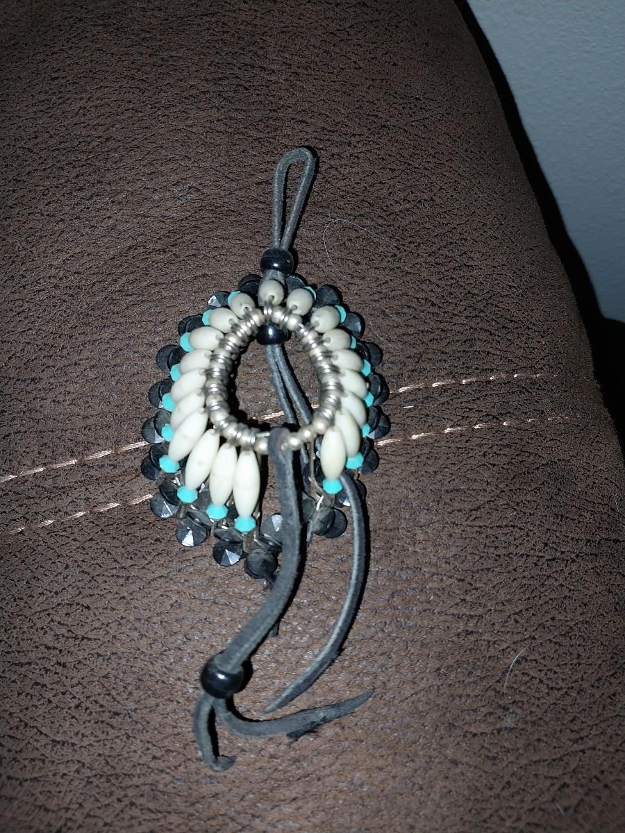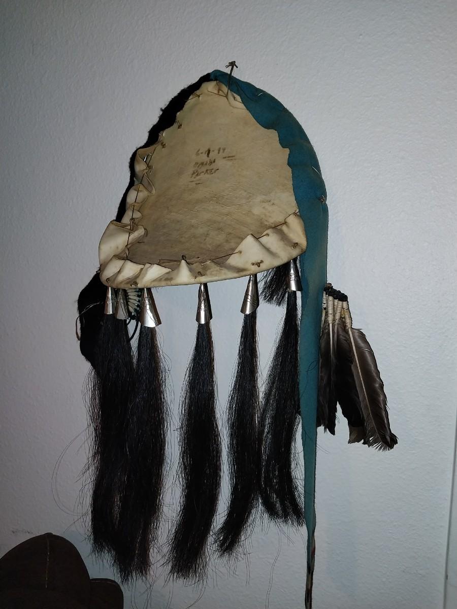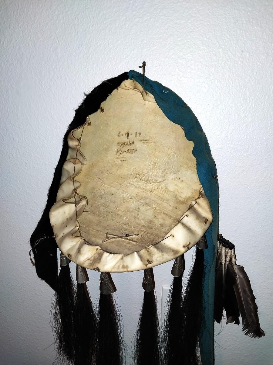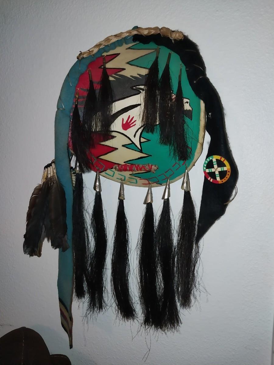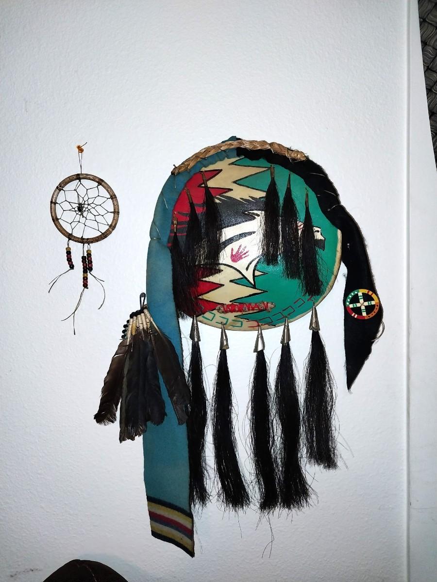 NATIVE AMERICAN HAND PAINTED WALL HANGING ON LEATHER