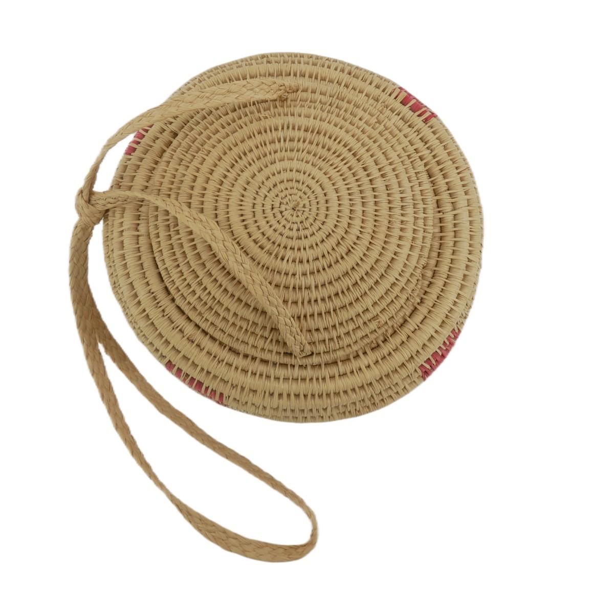 Gorgeous hand-woven Native American basket with strap and lid, red color accents along the sides. Measures approximately 9" x 5". Strap is knotted and approximately 17" in length. Weighs 1 lb.