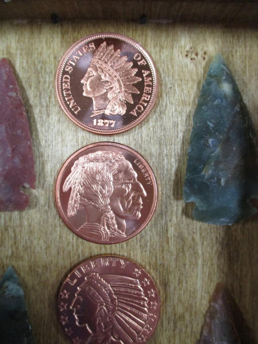 Native American Indian Head .999 Ounce Copper Rounds in Shadow Box
