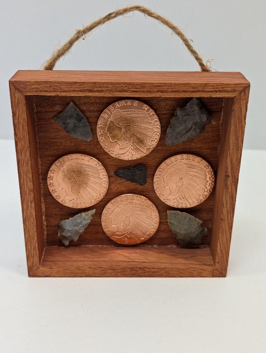 Native American Indian Head Copper Rounds in Shadow Box