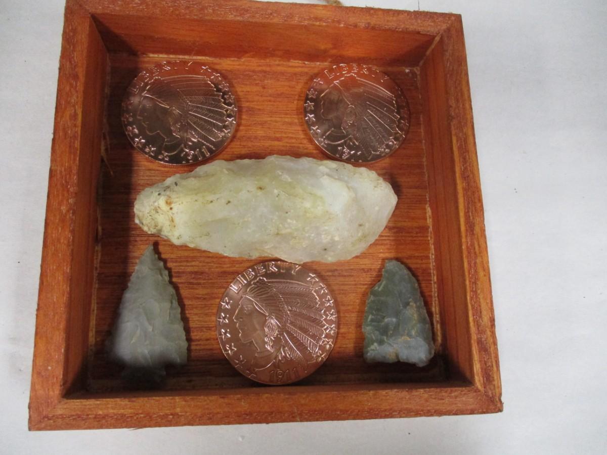 Native American Indian Head Copper Rounds in Shadow Box