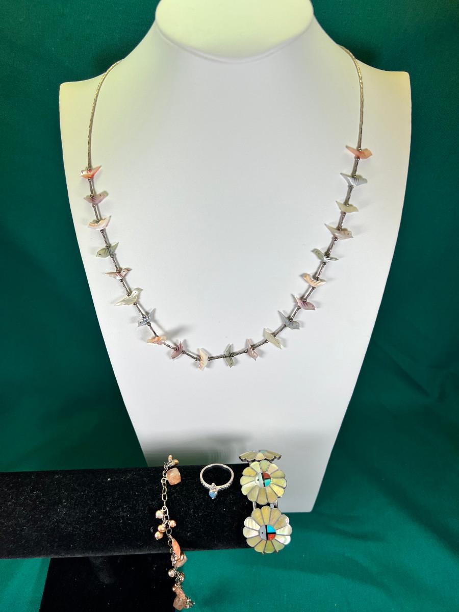 Native American Inlaid bracelet, fetish necklace, bracelet, ring