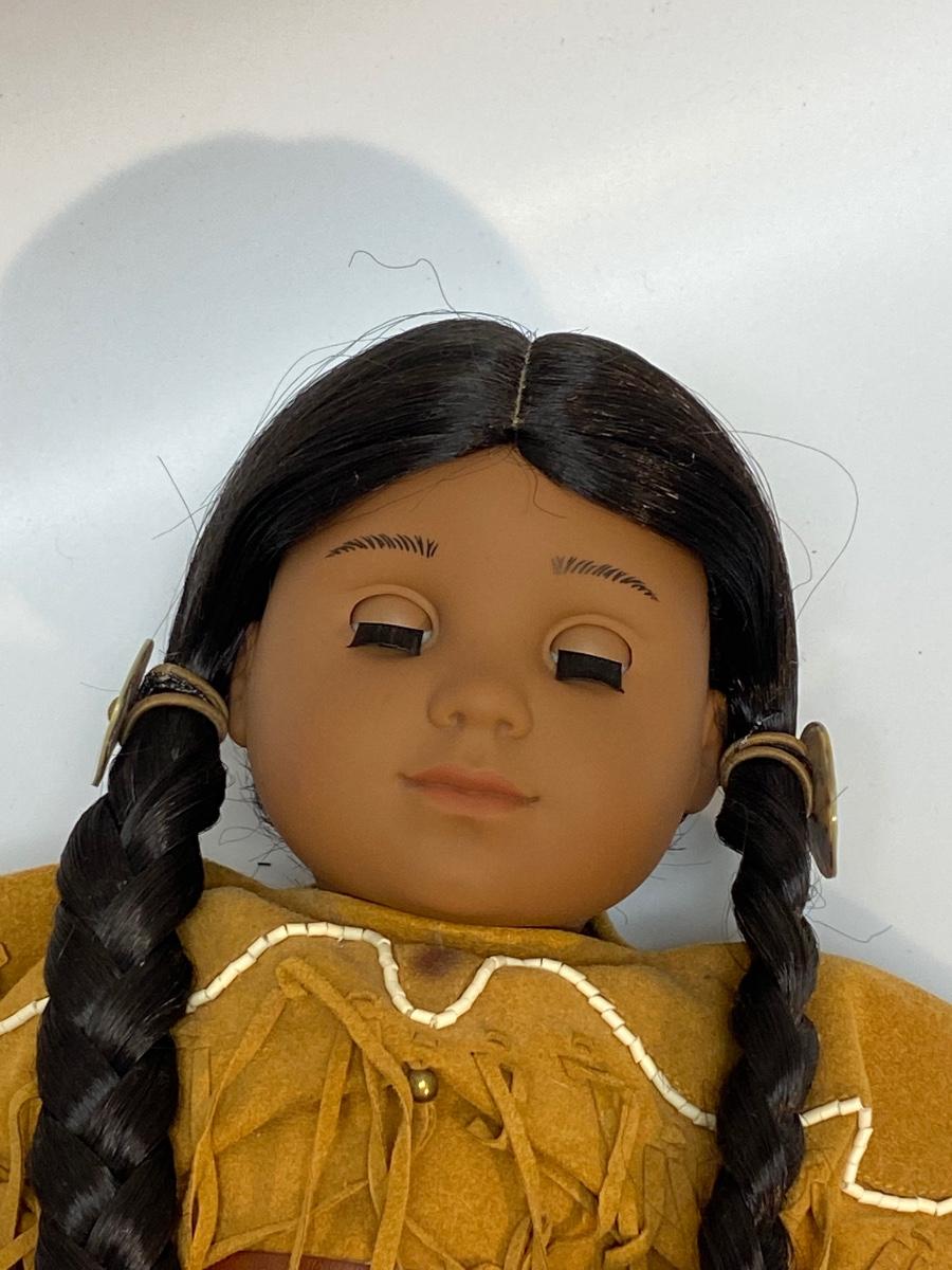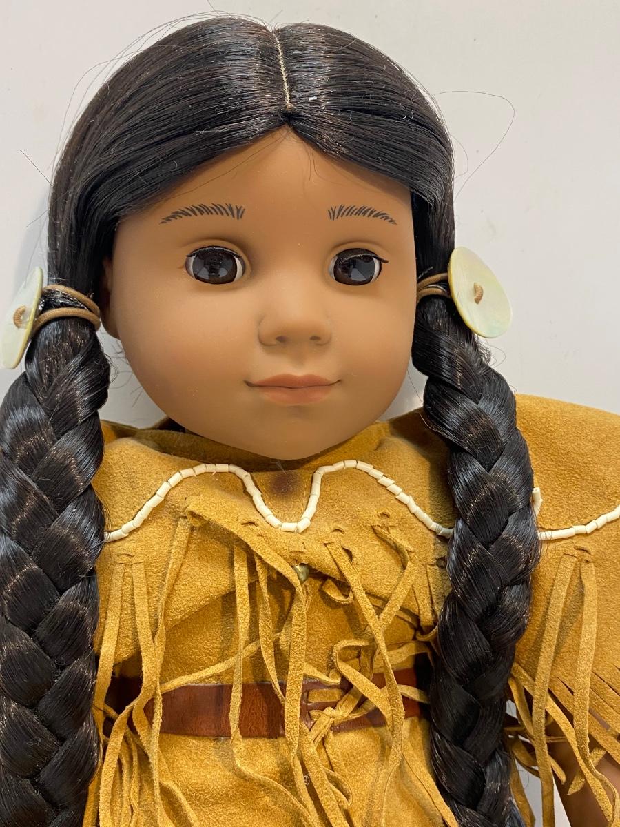 Native American Indigenous American Girl Doll, Kayla. Long braids and a traditional styled outfit. In good condition. Outfit not complete, missing purse and jewelry.