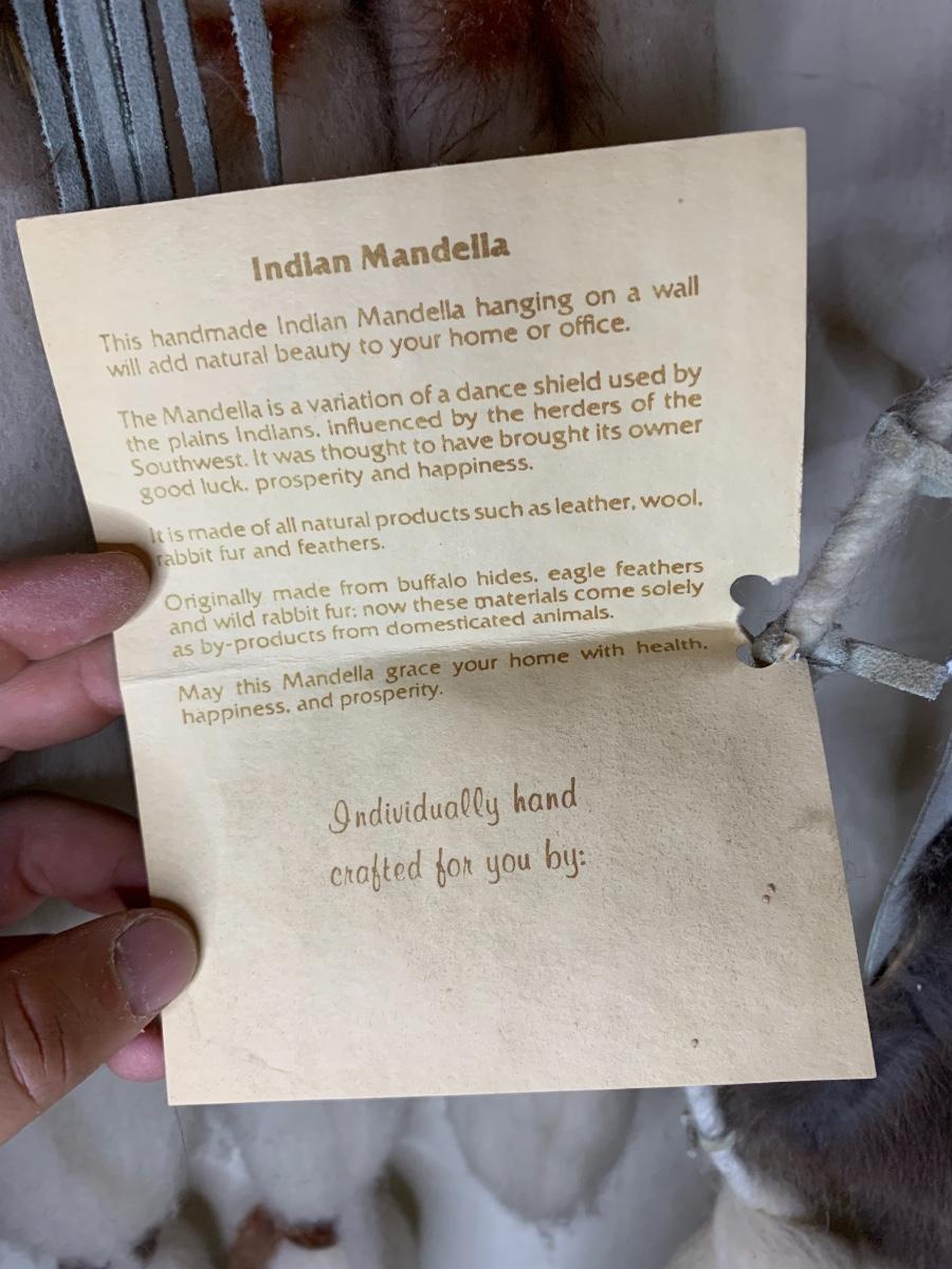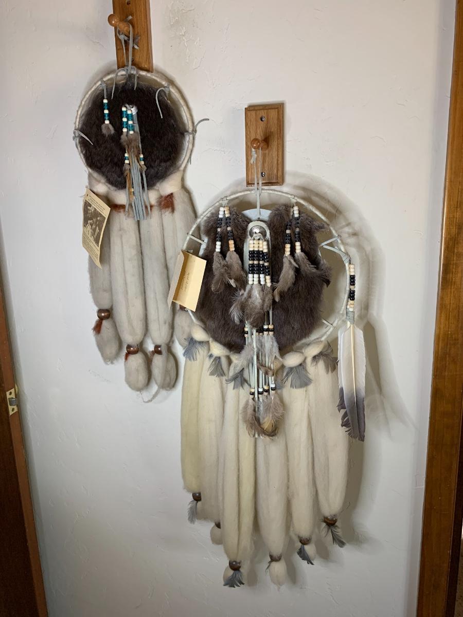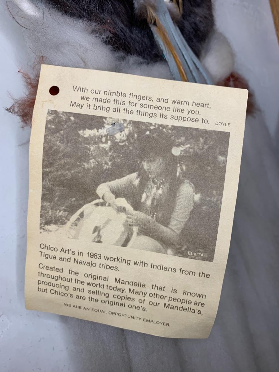 Two Native American Mandellas in great condition just need to be dusted. One large and one small both with original tags depicting their history.