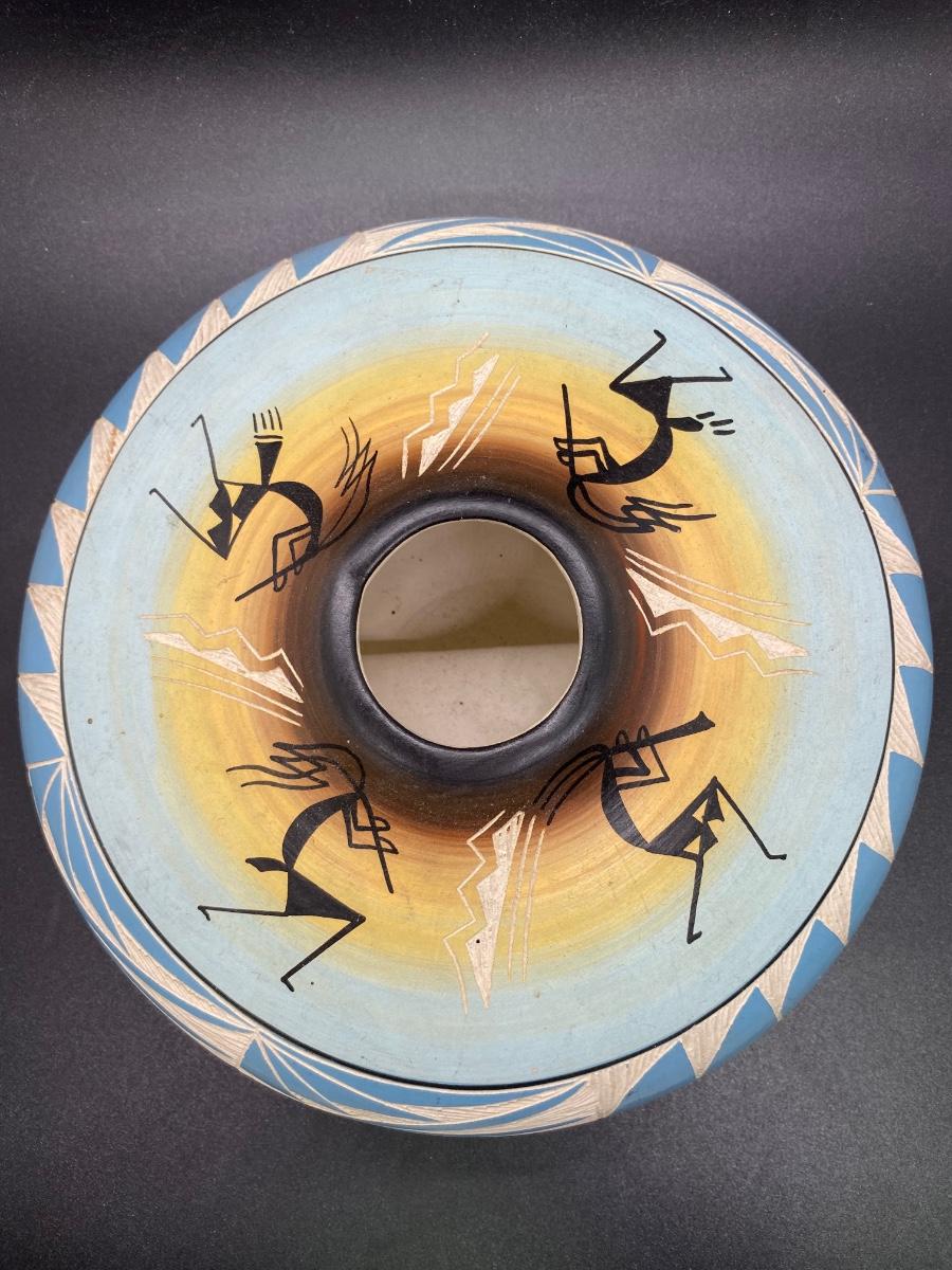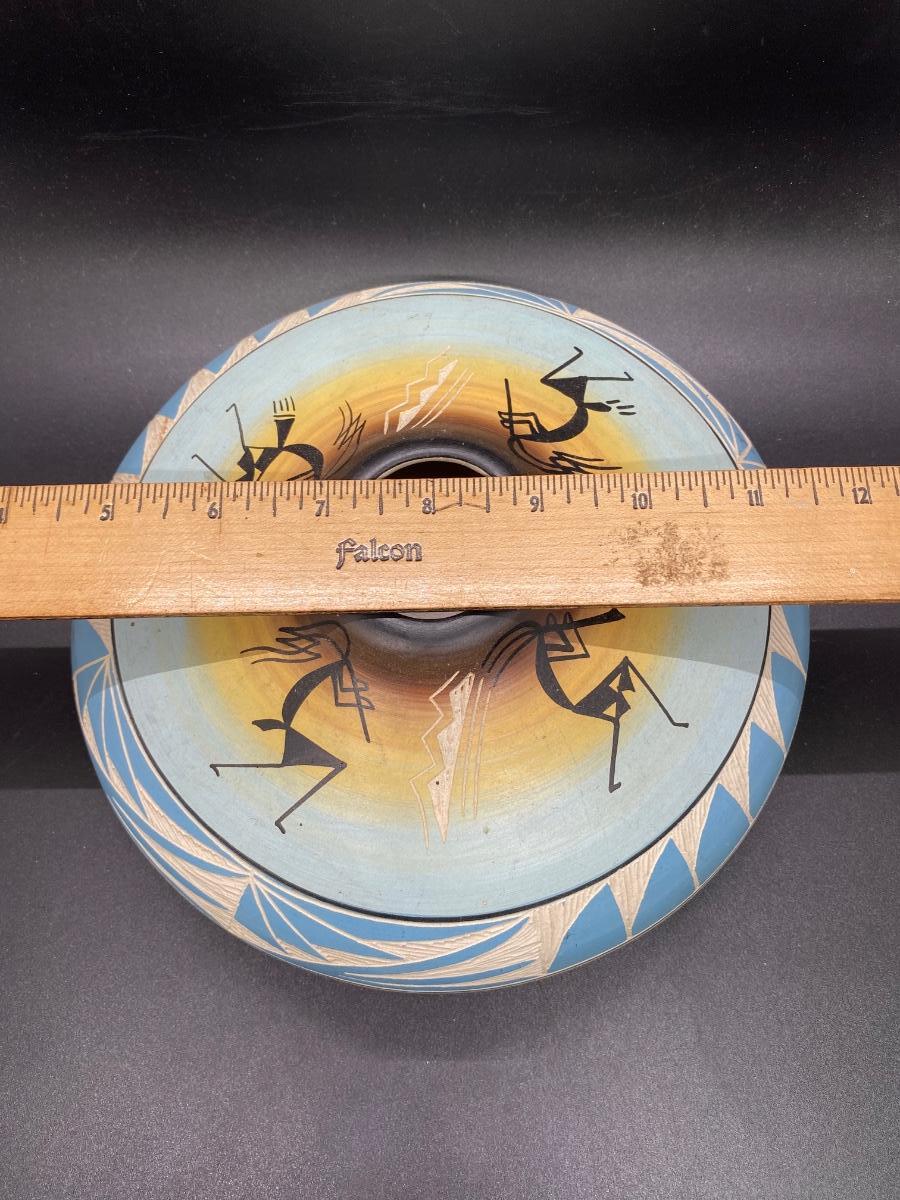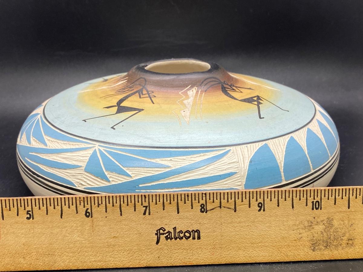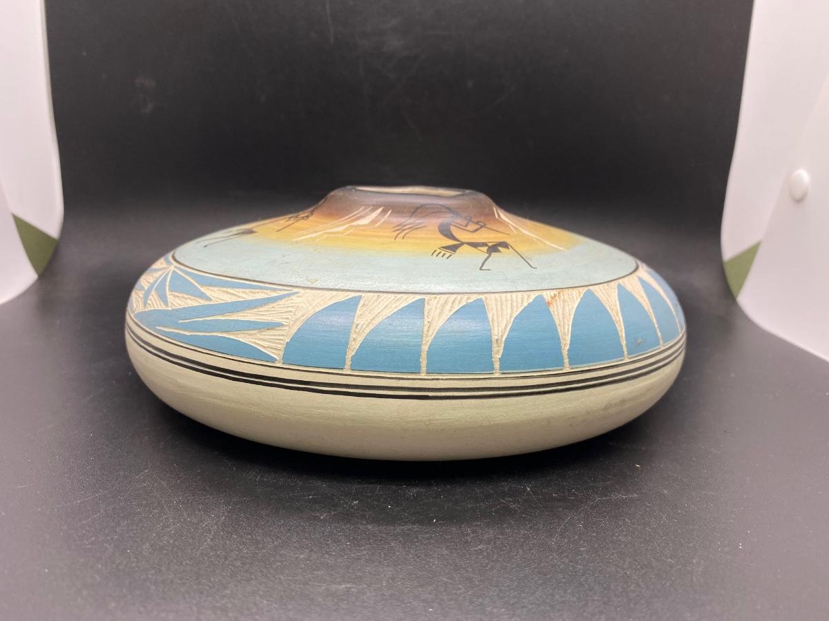 Native American Navajo Artist Alvin Colorful Painted Etched Seed Bowl