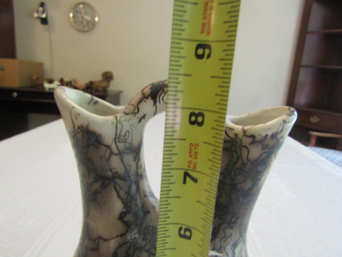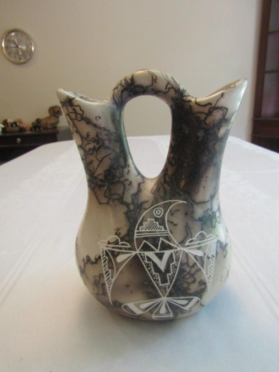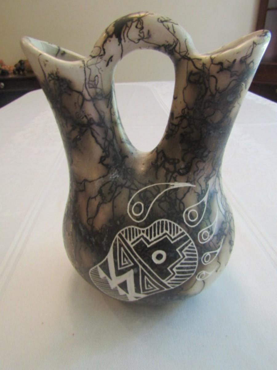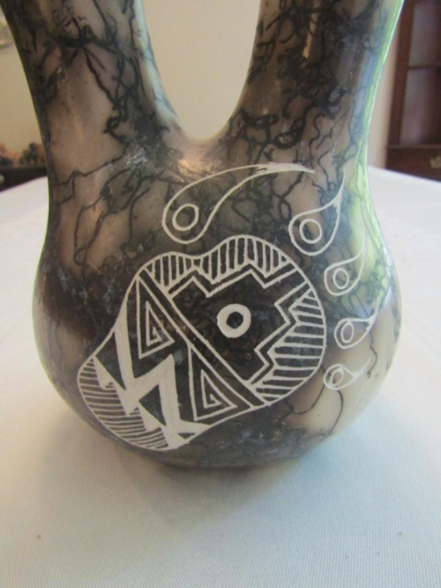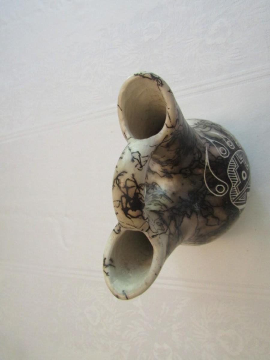 Native American New Mexico Hand Crafted Double Spout Water Jug Pottery Signed