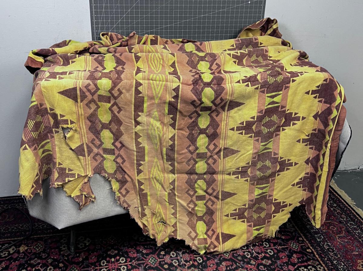 SHOW SEVERE EDGE DAMAGE! BUT awesome 40's print and would make great seat cover material etc.