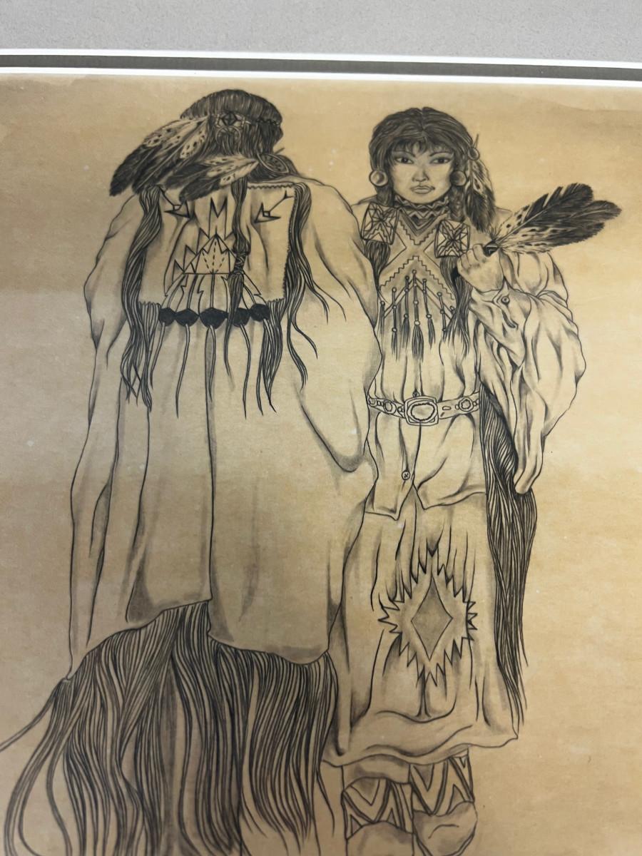 Native American Pencil Drawing Signed Dan Begay