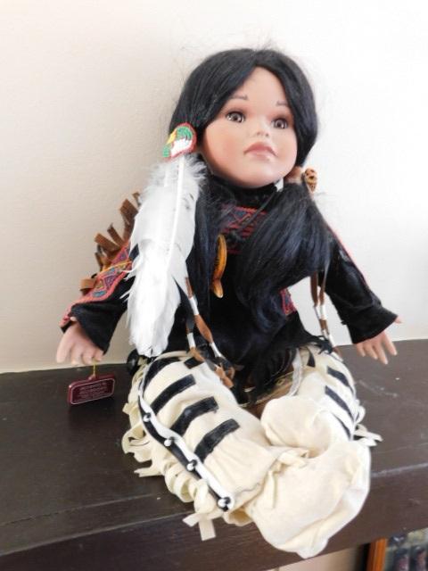 Native American Porcelain Doll Feather