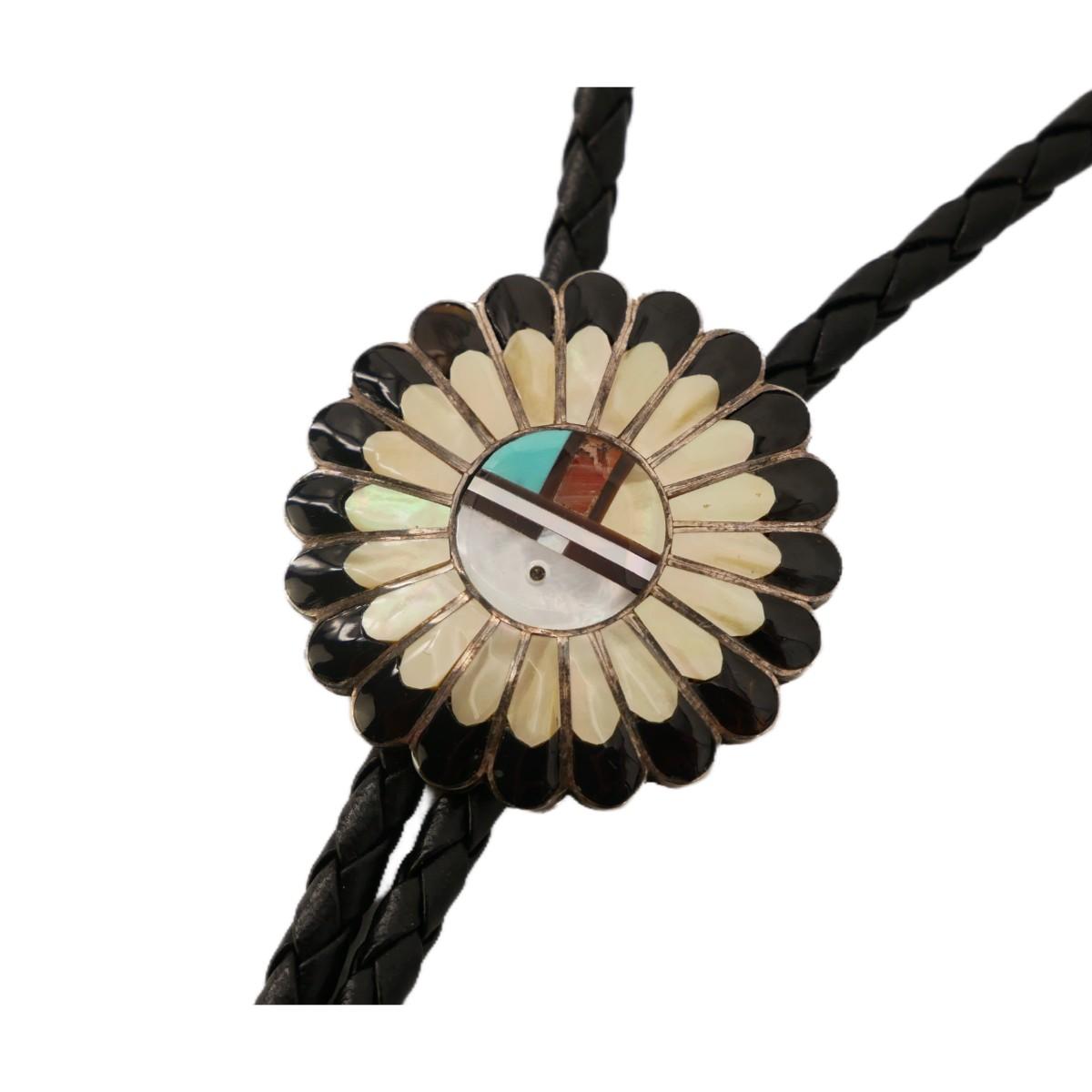 SIGNED Native American Zuni Sun Face Bolo Tie