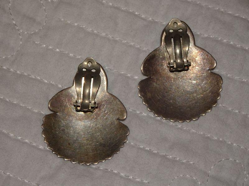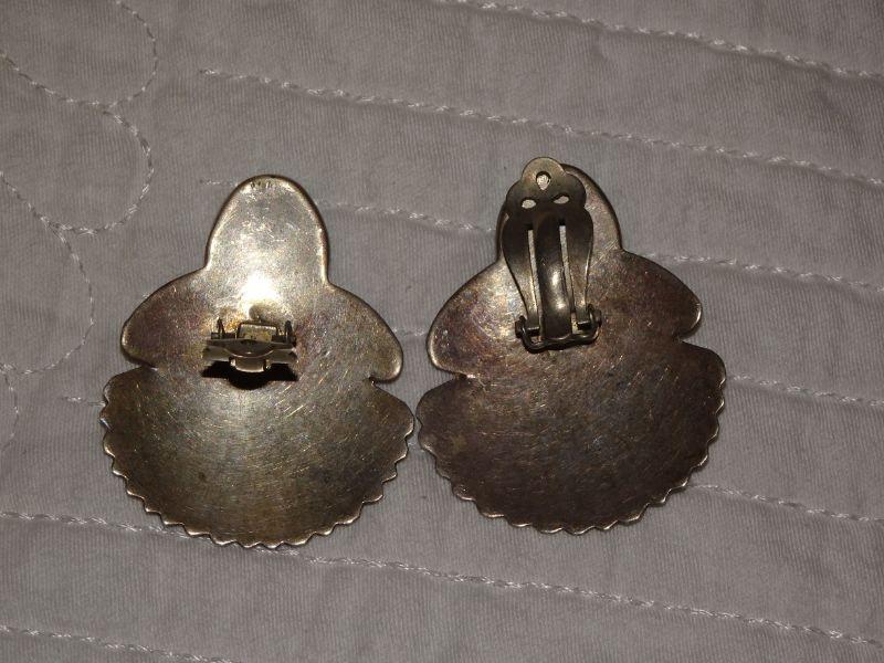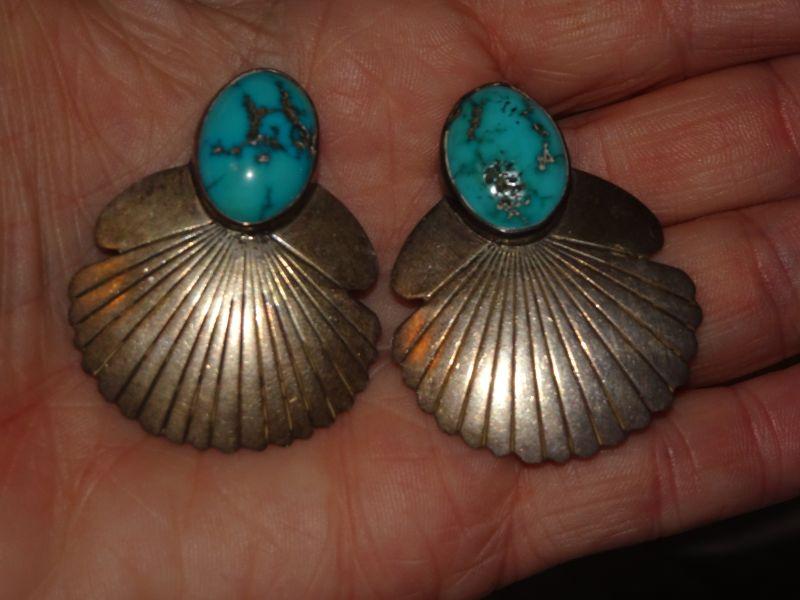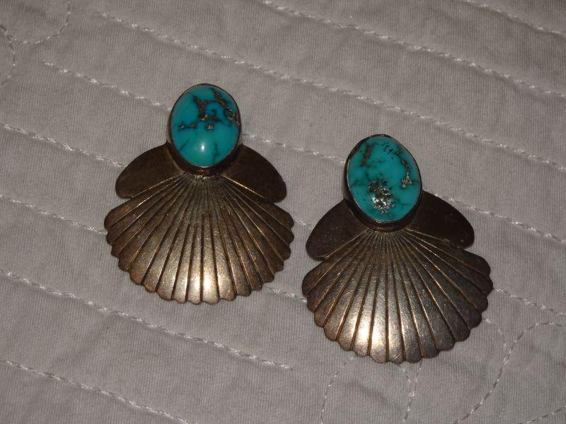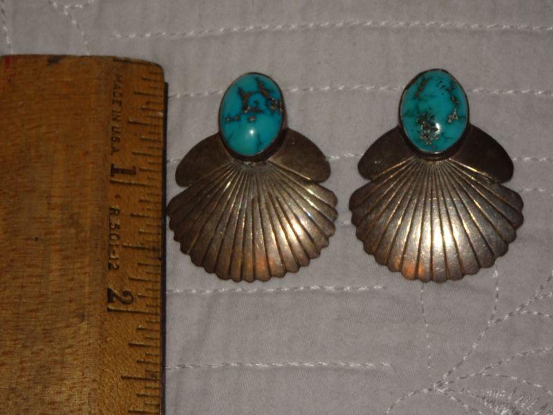 Native American Silver & Turquoise Post Earrings, Southwestern Style, Fan Feather Style