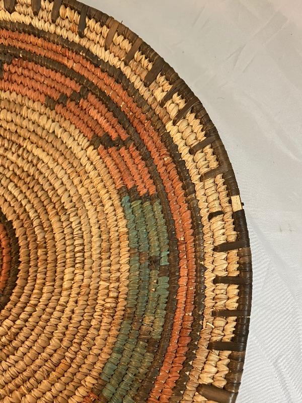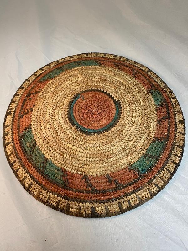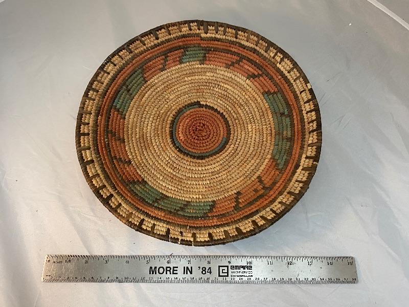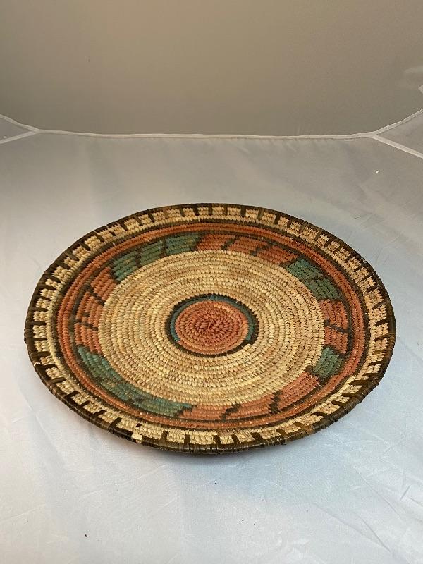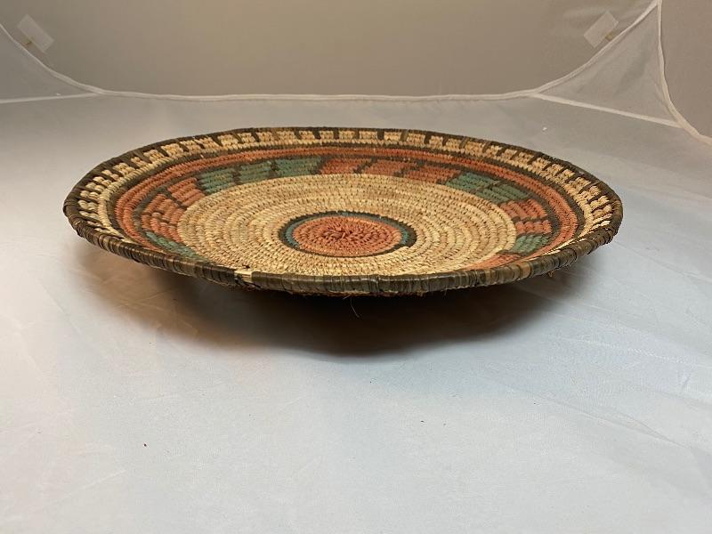 Native American Southwestern Bowl. Nicely woven, multicolors. Unsure of age or origin. Shallow more like a plate or tray.